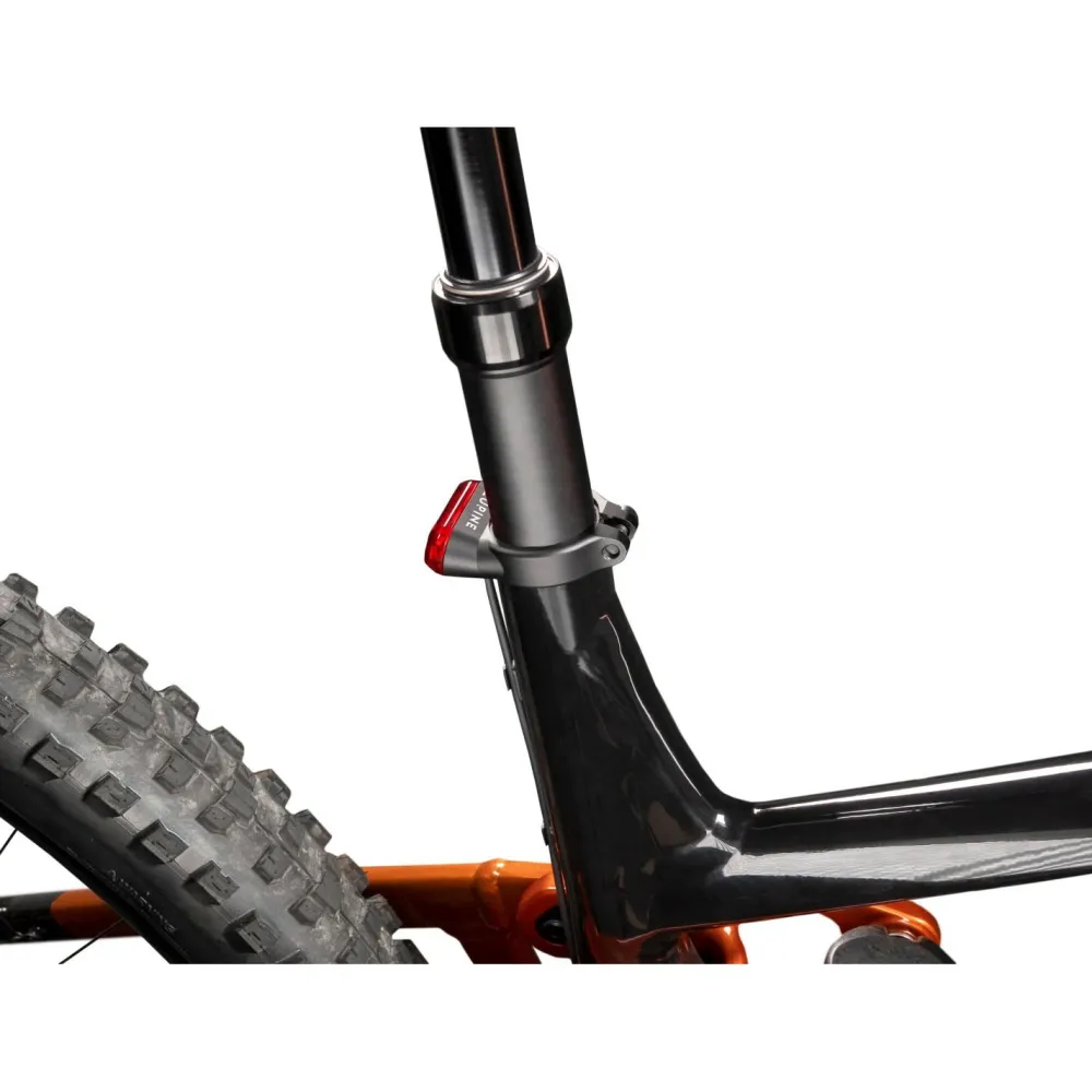 Im C14 36.4 mm kombiniert Lupine Sattelklemme und Rücklicht in einem eleganten Gehäuse aus Aluminium. Dabei ist die rot leuchtende Lampe nicht nur komplett StVZO konform und für die Nutzung am Fahrrad oder E-Bike im Straßenverkehr zugelassen, sondern dient gleichzeitig als funktionelles Bremslicht. Dafür hat Lupine einen G-Sensor in das wetterfeste Rücklicht integriert, der automatisch bei Bremsverzögerung reagiert und dadurch nachfolgende Radfahrer oder andere Fahrzeuge frühzeitig warnt. So sorgt die leuchtende Sattelklemme stets für optimale Sicherheit im Straßenverkehr.