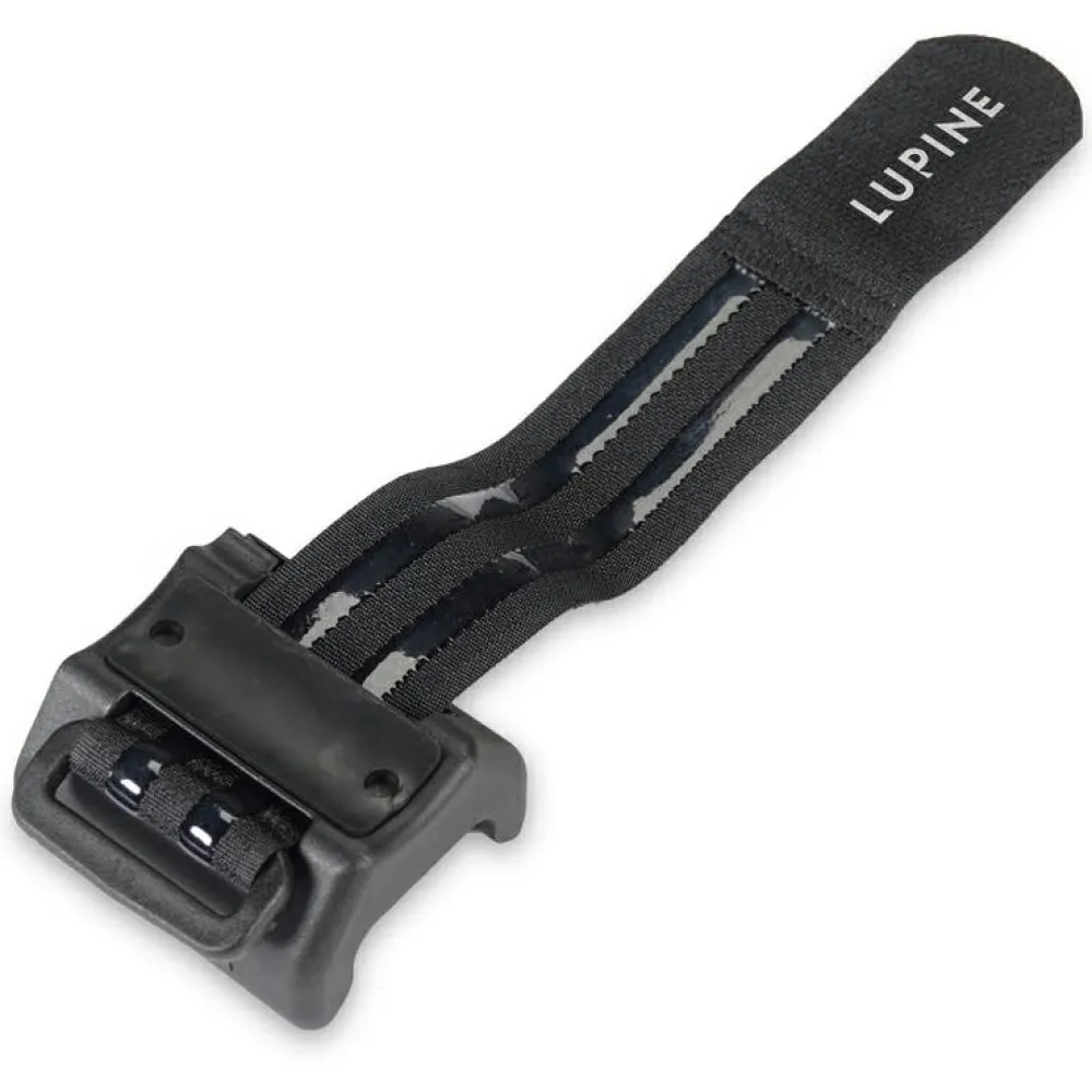 Der Lupine FastClick Rahmenhalter dient zur Befestigung des Lupine FastClick Akkus Deiner Helm- oder Stirnlampe direkt am Rahmen. Ein kurzes (21 cm) und ein langes (30 cm) Klettband mit rutschfester Beschichtung sind im Lieferumfang enthalten.