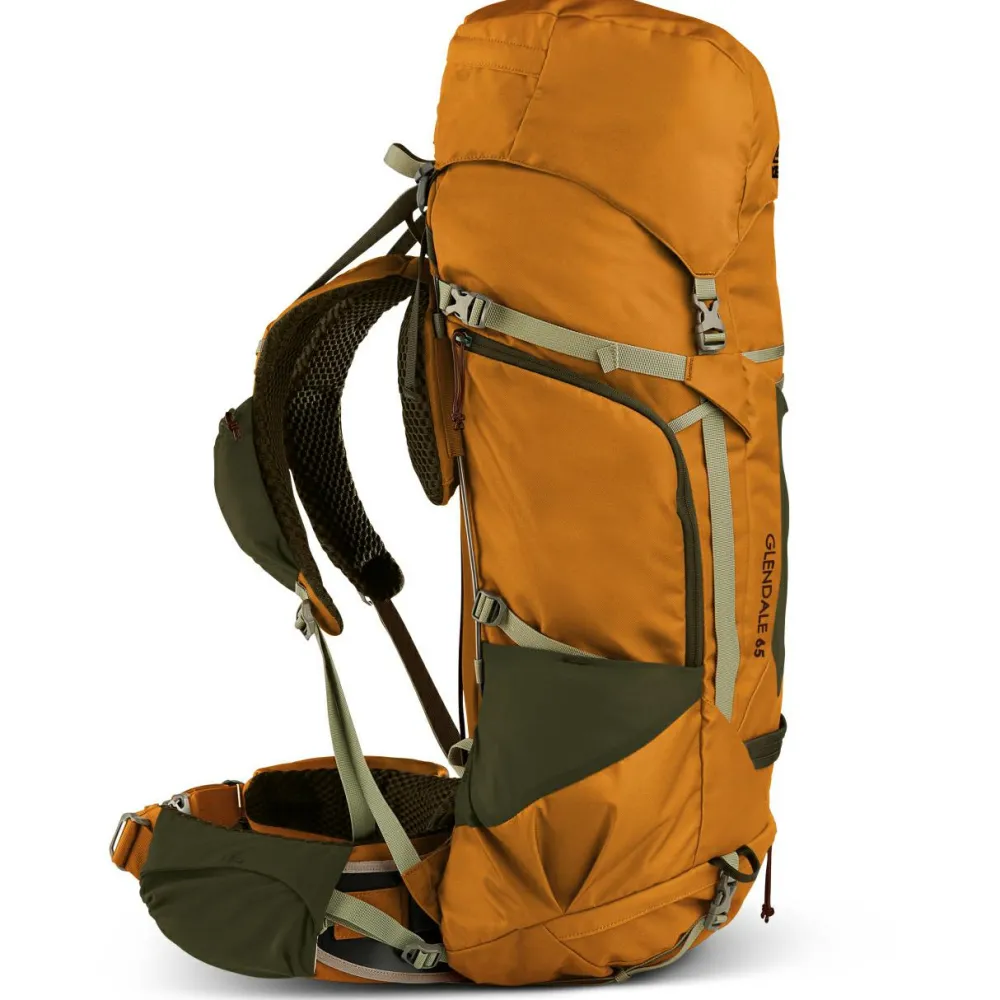 Der Glendale 65 von Kelty bietet vielseitige Verstaumöglichkeiten und passgenauen Tragekomfort für mehrtägige Trekkingtouren! Der geräumige Trekkingrucksack ist aus strapazierfähigem Polyester gefertigt und bietet mit seinem Volumen von 65 Litern großzügigen Stauraum für Kleidung, Proviant und sonstige Ausrüstungsgegenstände. An der linken Seite befindet sich ein großer Reißverschluss, wodurch der Rucksack sowohl von oben als auch von der Seite aus zugänglich ist. Die praktischen Schulter- und Hüftgurttaschen bieten leicht zugänglichen Stauraum für Kleinkram, während die Trinkflaschen griffbereit in den praktischen Seitentaschen verstaut werden können. Für den Schlafsack ist außerdem ein separates Reißverschlussfach vorhanden.