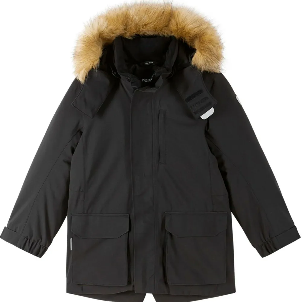Die verstellbare Kapuze mit abnehmbarem Kunstfellbesatz bietet zusätzlichen Schutz gegen Wind und Kälte und kann bei Bedarf auch problemlos abgenommen werden. Die Jacke besitzt darüber hinaus zwei große Fronttaschen sowie eine Brusttasche mit Reißverschluss, die Stauraum für diversen Kleinkram bieten. Die verstellbaren Ärmelbündchen und der verstellbare Saum garantieren einen passgenauen Sitz und runden das komfortable Design perfekt ab. Warm und gemütlich durch die kalte Jahreszeit – mit der Kid’s Ajaton von Reima!