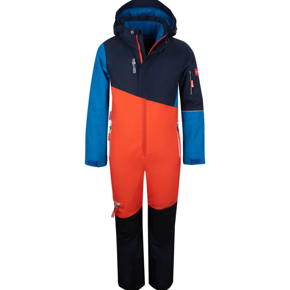 Hält dicht und warm auf der Piste, der Overall Kid’s Hallingdal Snowsuit von Trollkids! Der Overall kommt mit einem wasserdichten Material daher, das Dich zuverlässig vor Schnee und Nässe schützt. Wird es besonders ungemütlich, wird die warme Kapuze drüber gezogen. Im Tiefschnee schützt der Schneefang an den Beinenden zuverlässig. Für die nötige Wärme sorgt die synthetische Isolierung. Selbst an kalten, feuchten Tagen hält sie stets warm. Mit den verstellbaren Ärmelbündchen lässt sich die Wärme im Inneren halten. Dank verstellbarer Beinabschlüsse ist das Handling mit den Skistiefeln unkompliziert. Verstärkungen an Knien und am Beinsaum schützen die Hose vor Abrieb und Beschädigungen. In den zahlreichen Taschen ist alles sicher untergebracht! Ein toller Partner für die Piste!