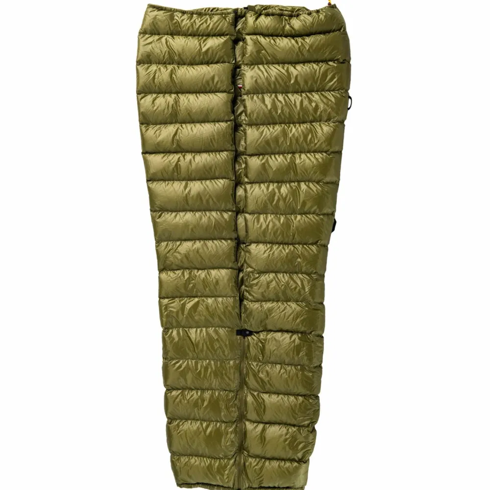 Der Quest Quilt von Pajak bietet eine optimale Kombination aus geringem Gewicht, guter Isolation und vielfältigen Einsatzmöglichkeiten. Die Daunenfüllung bietet mit ihren 700 cuin eine überzeugende Bauschkraft und sorgt für eine umfassend zuverlässige Isolation. Die Fußbox sowie der Kragen sind mittels Kordelzug individuell einstellbar und es besteht die Möglichkeit ihn mit einer Isomatte oder einer Hängematte zu koppeln.