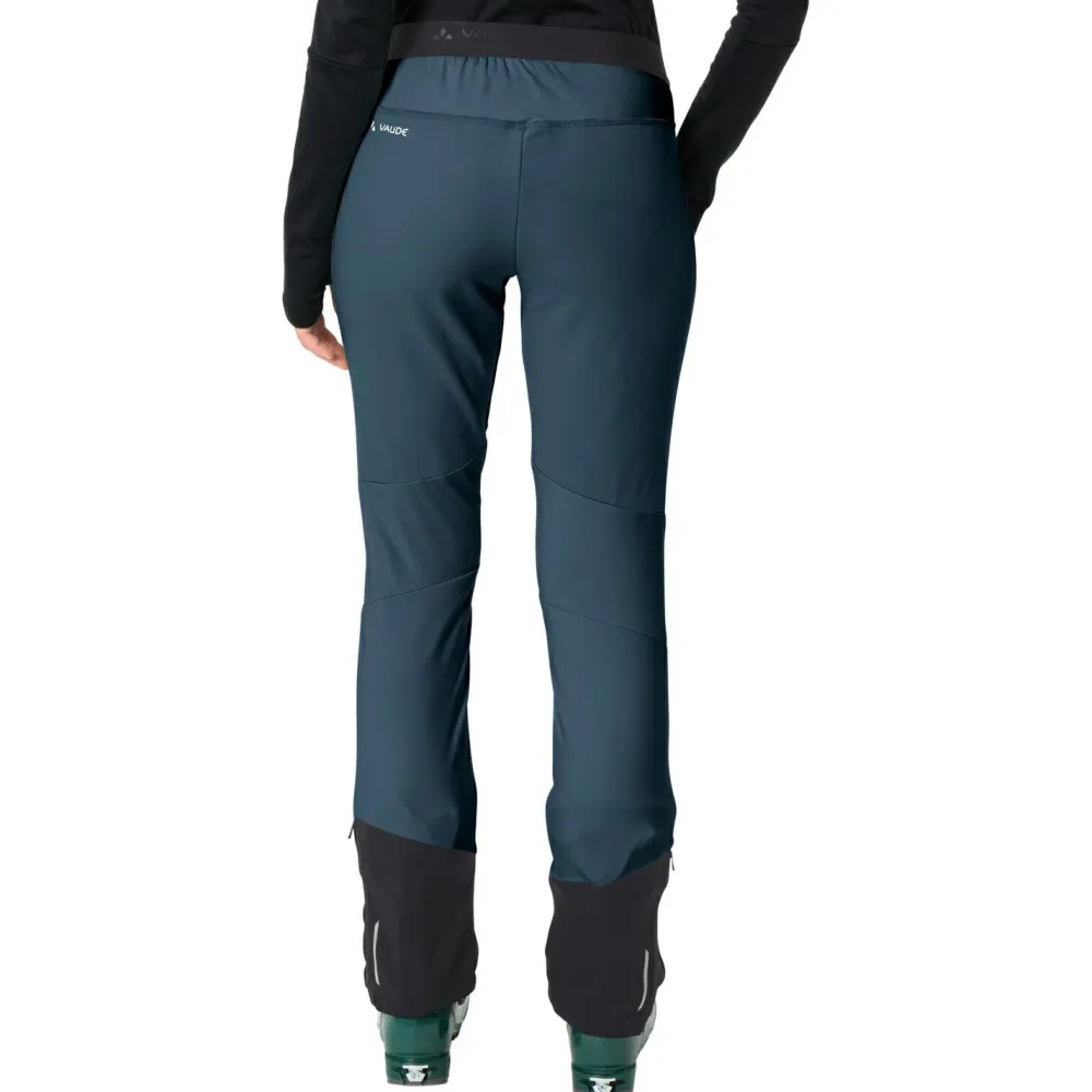 Die Women’s Larice Light Pants III von Vaude ist speziell für Skitouren und Langlauf entwickelt. Dank des elastischen Hüftbunds sitzt die Hose auch bei langen Anstiegen bequem, während vorgeformte Knie und ein Kordelzug Dir volle Bewegungsfreiheit bieten. Praktische Belüftungsreißverschlüsse helfen Dir, das Körperklima zu regulieren, wenn es anstrengend wird. Mit den Reißverschlüssen an den Beinenden gelingt das An- und Ausziehen selbst mit Skischuhen mühelos. Reflektierende Details sorgen dafür, dass Du auch bei Dämmerung gut sichtbar bleibst.