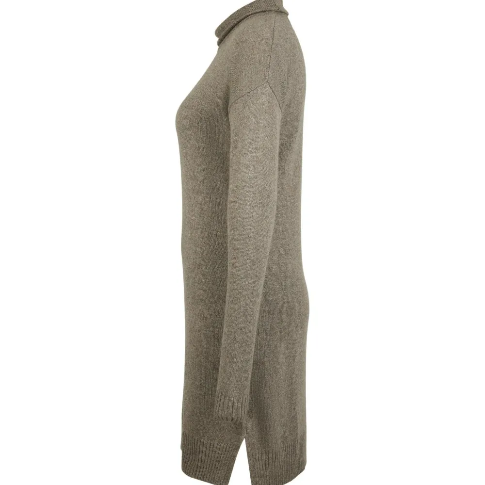 Gefertigt ist das warme Kleid mit Rollkragen aus einer Viskose-Wolle-Kunstfaser-Mischung, die alle Vorteile der einzelnen Fasern mitbringt. Viskose ist besonders hautfreundlich, weich und formstabil. Die feine Merinowolle bringt von Natur aus funktionelle Eigenschaften mit. Sie ist atmungsaktiv, temperaturregulierend und sorgt dafür, dass sich Bakterien nicht so leicht auf der Faseroberfläche festsetzen können. Dadurch wird die Entstehung von schlechten Gerüchen auf ein Minimum reduziert. Polyamid bringt ebenfalls Formstabilität in die Stoffmischung und macht das Gewebe strapazierfähiger.