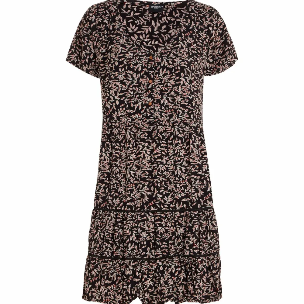 Bereit für unbeschwerte Sommertage? Das Women’s PRTLeni 23 Dress Kleid von Protest eignet sich toll auf Reisen, für die Freizeit aber auch fürs Büro!Das luftige Kleidchen aus 100% Viskose fällt locker und figurumschmeichelnd und sorgt für Abkühlung an heißen Tagen. Mit dem floralen Muster und dem modischen Blätterprint lässt es sich toll zu Jeansjacke, Sandalen und Boots kombinieren. Der stufenweise abgesetzte Rockteil in Kombination mit der halblangen Knopfleiste im Brustbereich sorgt für den lässigen Look.