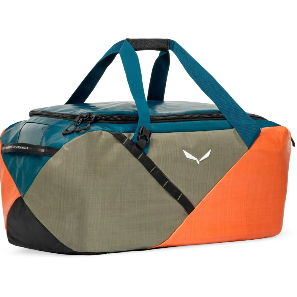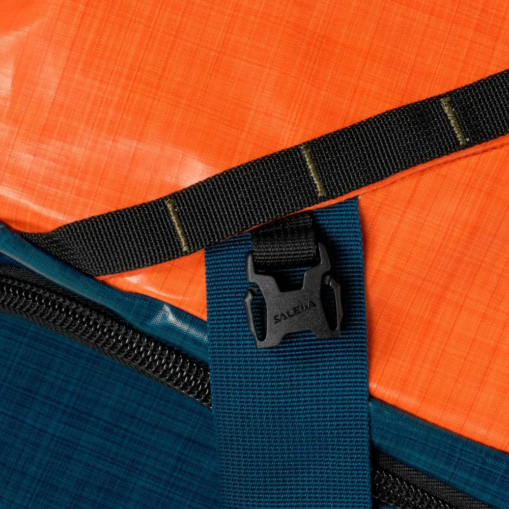 Die Discovery Duffle M von Salewa kommt mit einem erstaunlich geräumigen Innenleben daher und eignet sich für Reisen aller Art. Die hochwertigen Materialien sind sehr robust und schrecken vor unsanftem Kontakt auf dem Gepäckband am Flughafen genauso wenig zurück wie vor einem nassen Untergrund. Damit Du die Tasche komfortabel transportieren kannst, sind sowohl Tragegriffe als auch Schulterträger angebracht. Diese können mit nur einem Handgriff verstaut werden.