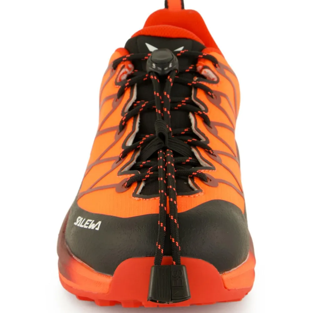 Die Zwischensohle ist aus weichem EVA-Schaumstoff konstruiert und sorgt besonders bei langen Touren für eine gezielte Entlastung der Muskulatur. Dank der präzisen Schnellschnürung sitzen die Multisportschuhe in jeder Situation bequem am Fuß und verrutschen nicht. Durch die praktischen Anziehschlaufen im Fersenbereich lassen sich die Salewa Kid’s Wildfire 2 PTX von den Kindern bequem alleine an- und ausziehen.