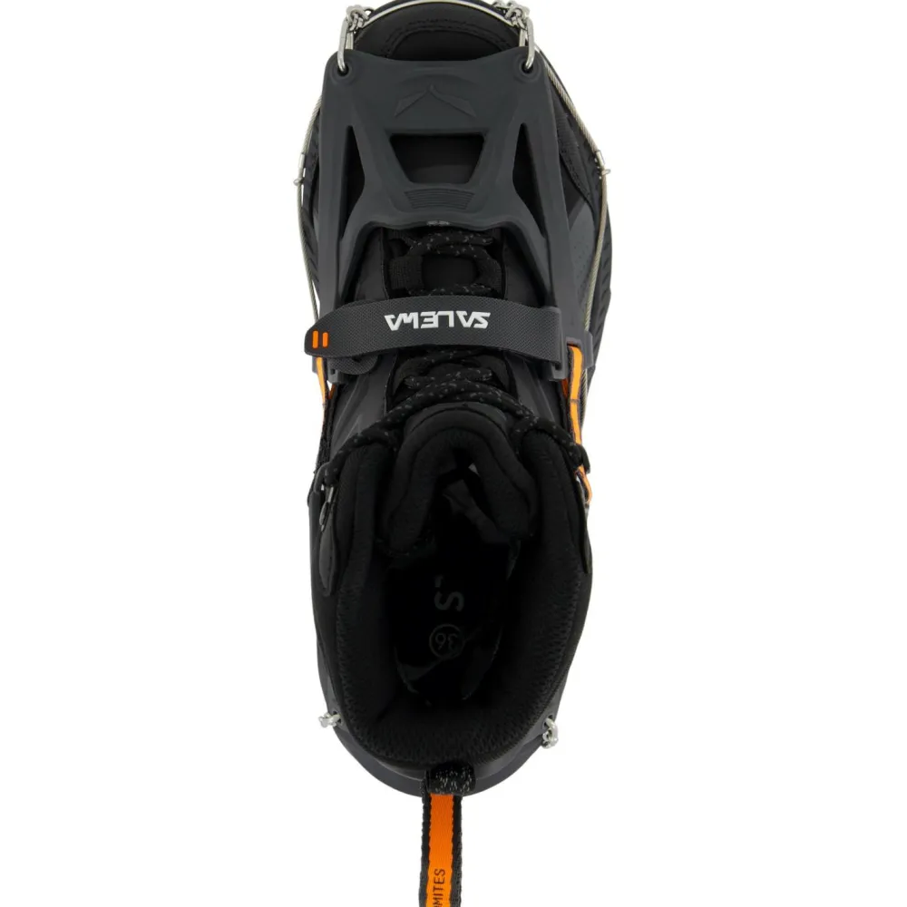 Die Pedroc Mountain Spike Crampons von Salewa kommen auf eisigen oder verschneiten Trails zum Einsatz: Die Konstruktion mit den neun bis zwölf Millimeter langen Spikes aus rostfreiem Stahl sorgen dabei für Halt auf glattem Untergrund. Die Spikes sind zudem durch leichte Stahlkabel und starke Ketten verbunden, um auch bei schnellen Bewegungen oder Drehungen Stabilität zu garantieren.