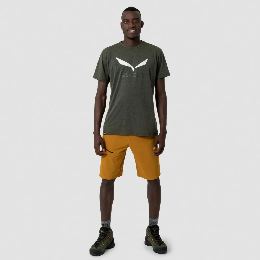 Ein funktioneller Allrounder ist das Funktionsshirt Solidlogo Dry T-Shirt von Salewa! Der Materialmix mit Baumwolle reguliert die Temperatur, trocknet schnell und ist elastisch. Elastische Nähte geben Dir die nötige Bewegungsfreiheit. Ob zum Laufen oder Wandern, das Shirt ist immer am Start!