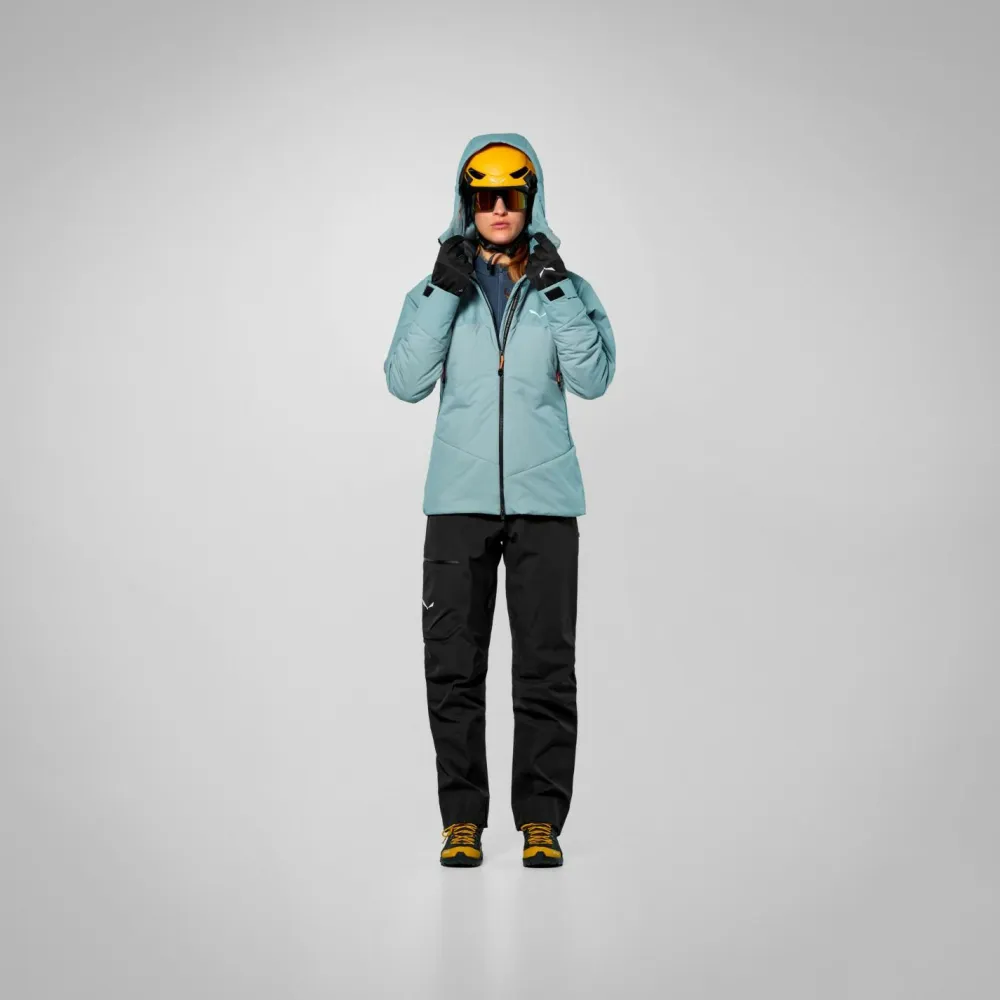 Die Women’s Ortles TW Air HD Jacket von Salewa richtet sich an alle, die bei alpinen Unternehmungen auf zuverlässige Wärme ohne unnötiges Gewicht setzen. Die Kombination aus TirolWool und recyceltem Polyester sorgt für eine effektive Isolierung, selbst bei Feuchtigkeit – ein echter Vorteil bei wechselhaften Bedingungen in Eis und Fels. Die hohlen Fasern speichern Luft und damit Körperwärme. Das Ergebnis: eine Jacke, die sich leicht anfühlt, aber spürbar wärmt – ideal für anspruchsvolle Mixed-Routen oder steile Eispassagen, bei denen Bewegungsfreiheit und Isolation gleichermaßen gefragt sind.