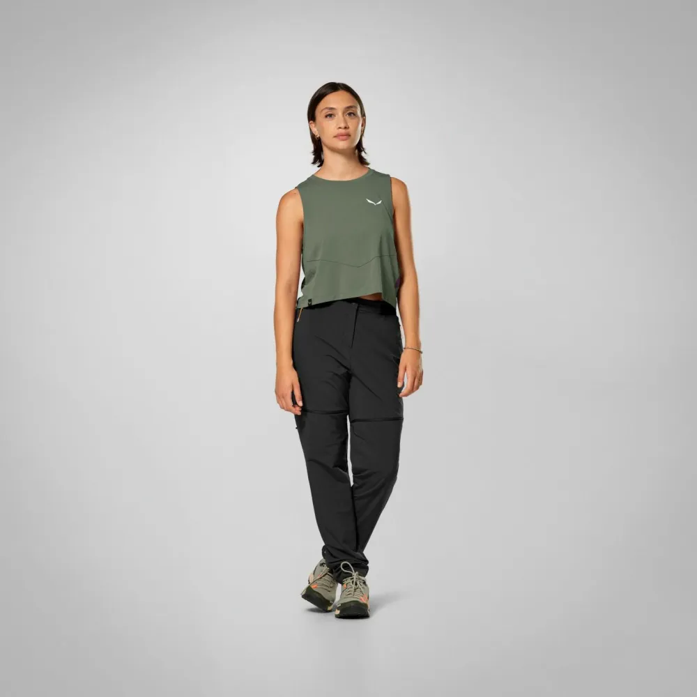 Die Women’s Pedroc 3 Durastretch 2in1 Pant von Salewa ist gemacht für Bewegung und Tempo. Mit nur 240 g Gewicht und athletischem Schnitt unterstützt sie Dich bei schnellen Aufstiegen und langen Etappen. Der verstellbare Bund mit Druckknopf und Reißverschluss sitzt sicher, während der Zwickel im Schritt maximale Bewegungsfreiheit garantiert. Praktische Details wie zwei Reißverschlusstaschen und eine offene Mesh-Rückentasche bieten Platz für wichtige Kleinigkeiten. Das strapazierfähige Material ist PFAS-frei, wasserabweisend und atmungsaktiv. Ein besonderes Highlight bieten Dir die abnehmbaren Beine und machen die Women’s Pedroc 3 Durastretch 2in1 Pant flexibel und funktional für Touren an warmen und kühlen Tagen.