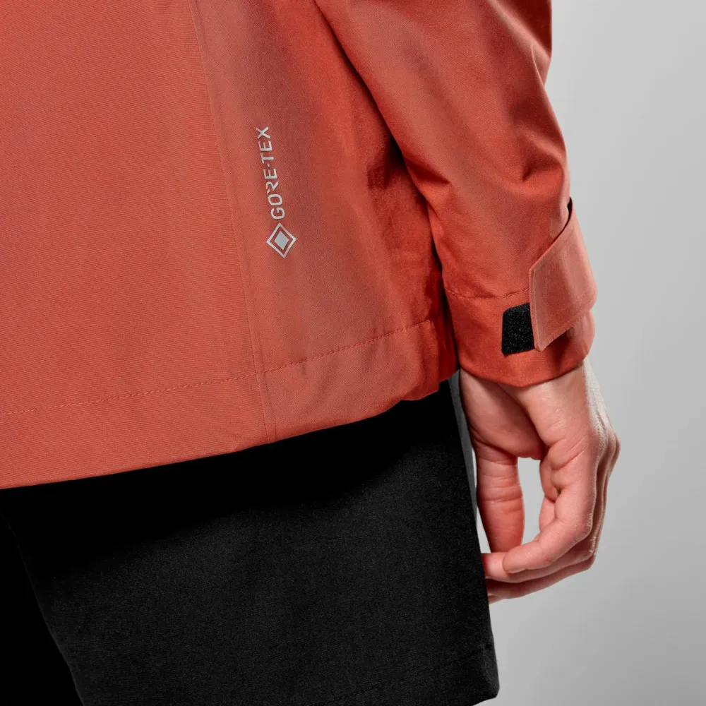 Die funktionalen Details der Jacke sind ebenso beeindruckend wie ihre Materialtechnologie. Der durchgehende Front-Reißverschluss und die verstellbare Kapuze mit Schirm bieten Flexibilität und Schutz bei wechselnden Wetterbedingungen. Dank der verstellbaren Klettverschlüsse an den Ärmeln und dem verstellbaren Saum kannst Du die Jacke individuell anpassen, um den besten Sitz zu gewährleisten. Die zwei Reißverschluss-Fronttaschen bieten praktischen Stauraum für Deine wichtigsten Utensilien während Deiner Trekkingabenteuer.