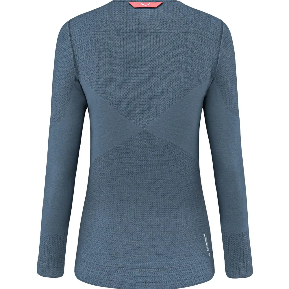 Das Women’s Zebru Responsive L/S Tee Longsleeve von Salewa liegt dank der weichen und hochwertigen Materialien angenehm auf der Haut. So entsteht ein hoher Tragekomfort, der vor allem beim Sport zum Tragen kommt. Die Nähte sind flach verarbeitet, wodurch unangenehme Reibestellen verhindert werden. Die funktionalen Eigenschaften der Materialien eignen sich perfekt für einen sportlichen Einsatz im alpinen Gelände. Wechselnde Temperaturen und schweißtreibende Anstiege sind für das Zebru Responsive eine willkommene Aufgabe. Die atmungsaktiven Eigenschaften transportieren Feuchtigkeit schnell an die Oberfläche, wo sie verdunsten können. Ist es auf dem Gipfel kälter als gedacht, kann das Longsleeve kurzerhand übergezogen werden und für angenehme Wärme sorgen.