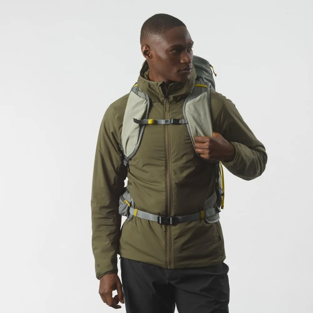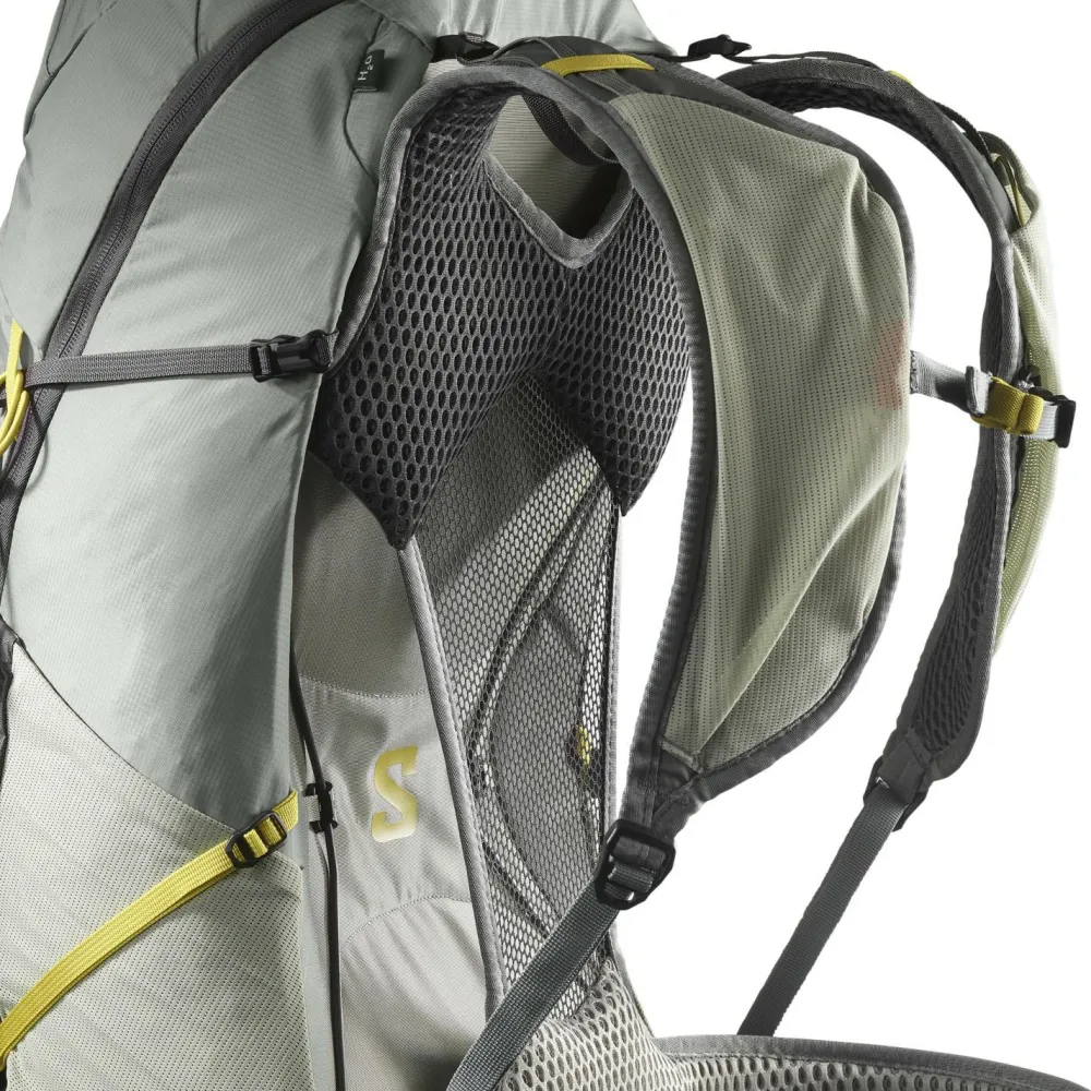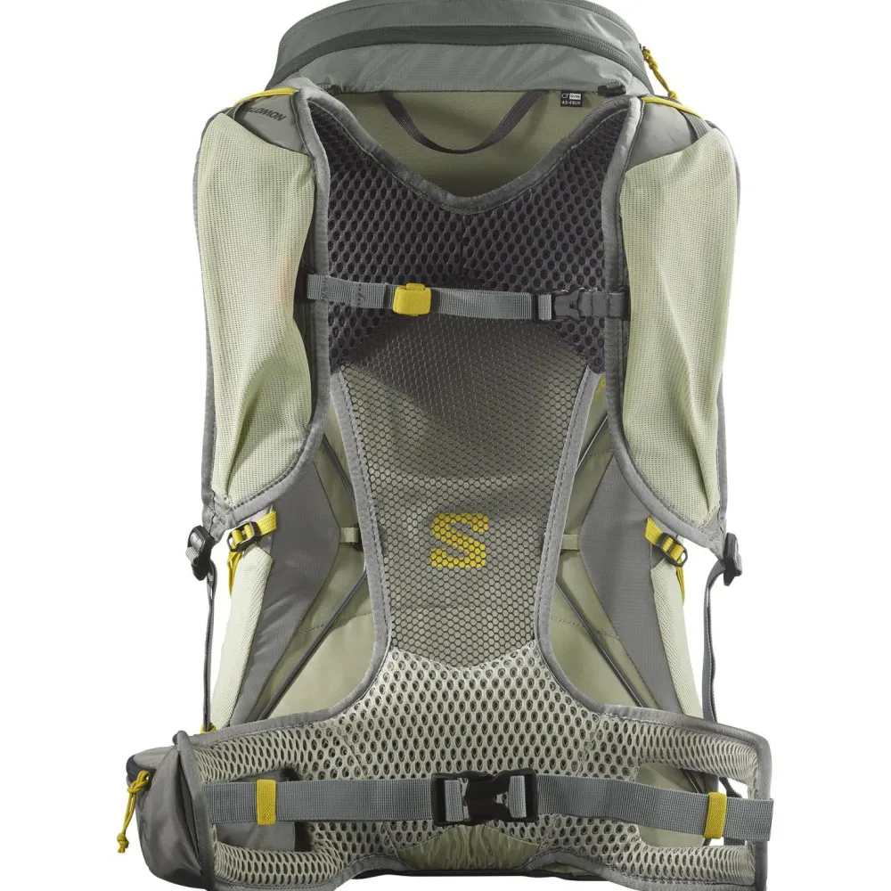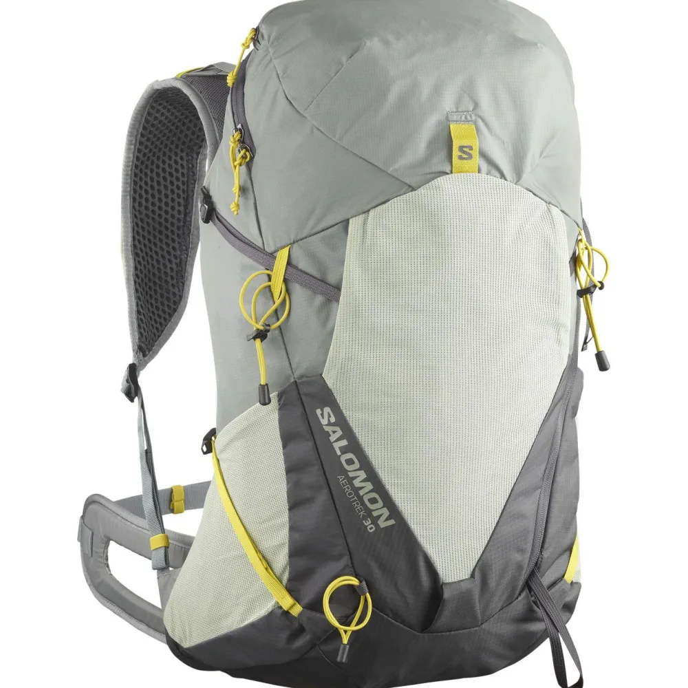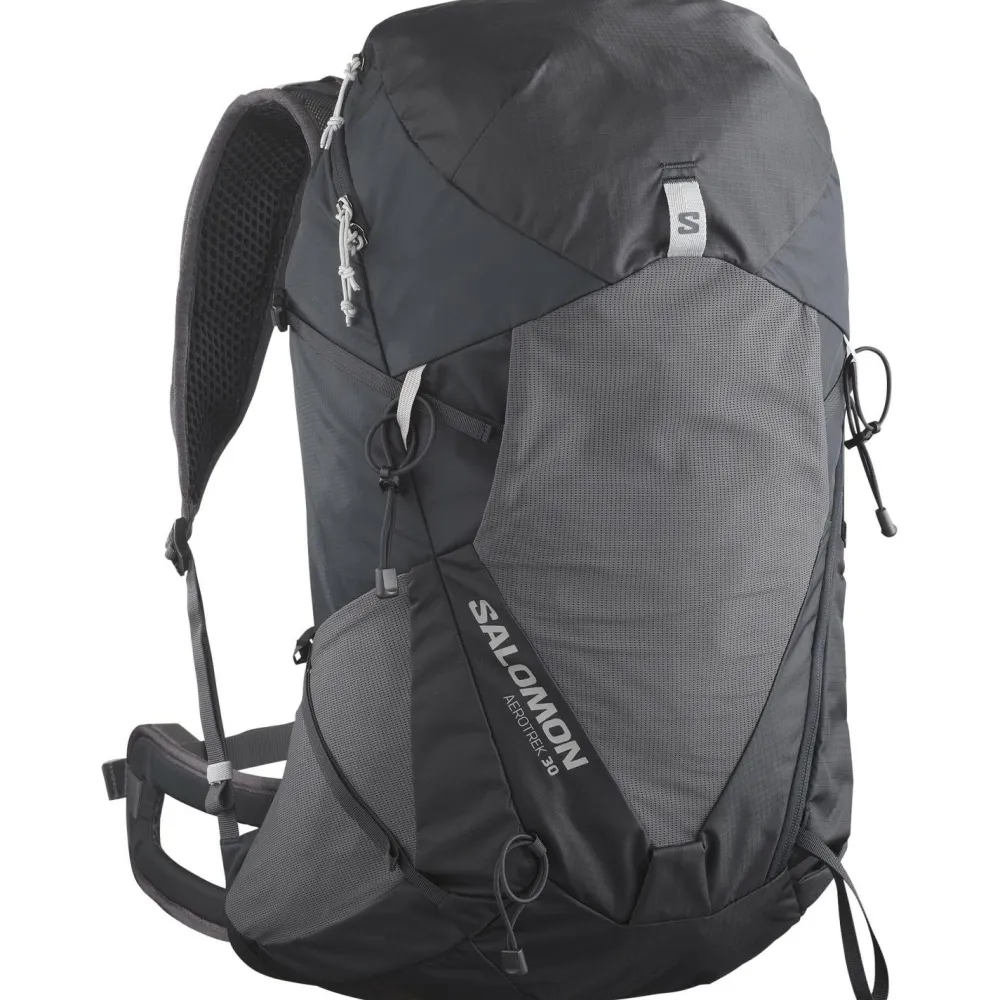 Mit dem Aerotrek 30 Wanderrucksack von Salomon bist Du für Deine Wanderungen im Gebirge und für Zustiege zu Sportkletterfelsen gut gewappnet.Er überzeugt mit seinem Netzrückensystem, das dafür sorgt, dass Dein Rücken stets gut abtrocknen kann, und mit der gepolsterten Unterstützung an Deiner Lendenwirbelsäule. Zusammen mit dem verstellbaren Hüft- und Brustgurt wird so größtmöglicher Komfort und Stabilität geschaffen.Für die optimale Lastverteilung kannst Du die seitlichen Kompressionsriemen und die Lastkontrollriemen an den Schulterträgern individuell einstellen.