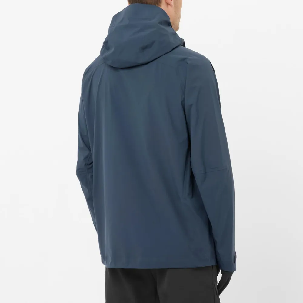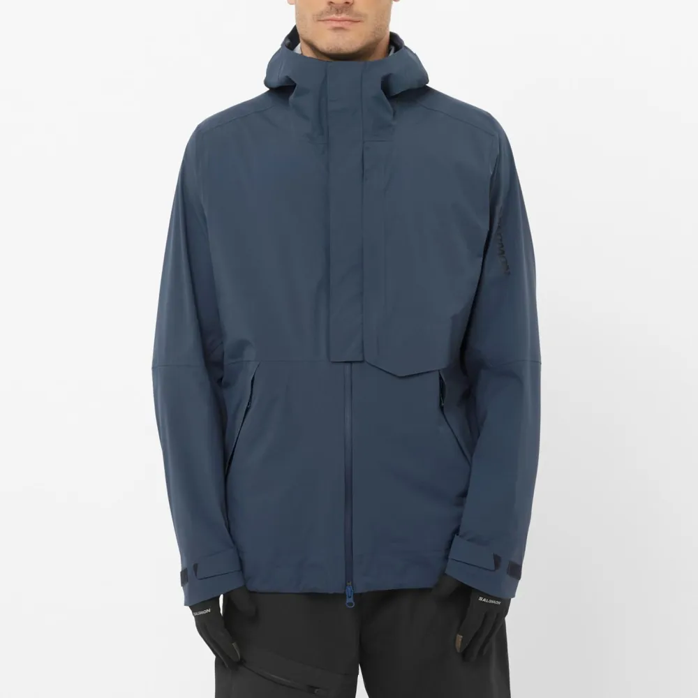 Praktische Details machen den Unterschied: Ein durchgehender Reißverschluss mit Windabdeckleiste hält kalte Luft draußen, während sich Kapuze, Saum und Ärmel individuell anpassen lassen – damit sitzt alles wie angegossen und kein Tropfen dringt ein. In den beiden Reißverschlusstaschen verstaust Du Schlüssel oder Snacks sicher und griffbereit. Reflektierende Elemente sorgen für zusätzliche Sicherheit bei schlechten Lichtverhältnissen; der dezente Logoprint verweist dezent auf Salomons alpine Wurzeln.
