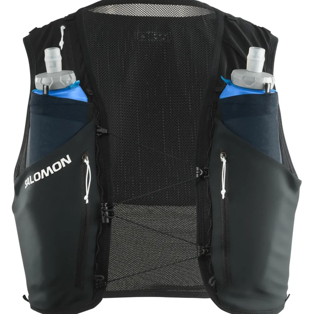 Hast du etwas weniger Gepäck dabei, dann ist der Trailrunningrucksack ADV Skin Cross Season Race Flag von Salomon der ideale Partner! Sein Material ist leicht, robust und wasserabweisend. Die innovative Brustgurt-Konstruktion ermöglicht ein schnelles Verstellen und Befestigen des Rucksacks. Das Tragesystem sitzt bequem wie eine Weste, ist atmungsaktiv und wackelt nicht. Zahlreiche kleine Taschen bieten Platz für Riegel und Co. Damit hast Du alles sofort griffbereit!