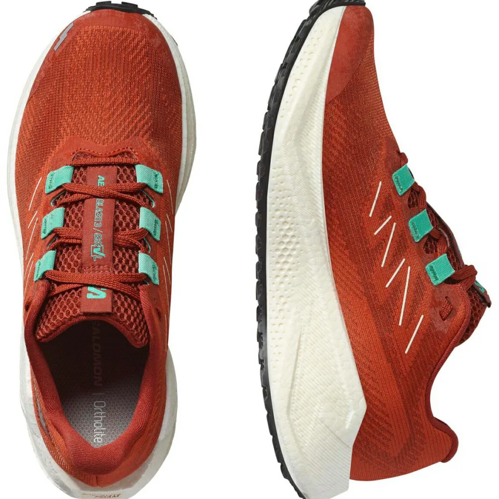 Die Women’s Aero Blaze 3 Grvl von Salomon bieten Dir mit der EnergyCell-Zwischensohle eine effektive Stoßdämpfung, die jeden Schritt abfedert – besonders auf langen Strecken und wechselndem Untergrund ein echter Vorteil. Die OrthoLite-Einlegesohle sorgt zusätzlich für ein angenehm weiches Fußbett, das atmungsaktiv ist und sich Deinem Fuß optimal anpasst. Dank der Contagrip-Sohle genießt Du zuverlässigen Halt, egal ob Du auf Asphalt oder auf Schotterwegen unterwegs bist. Die gepolsterte Ferse und Zehenspitze schützen empfindliche Bereiche vor Druckstellen, damit Du Dich voll und ganz auf Deinen Lauf konzentrieren kannst.