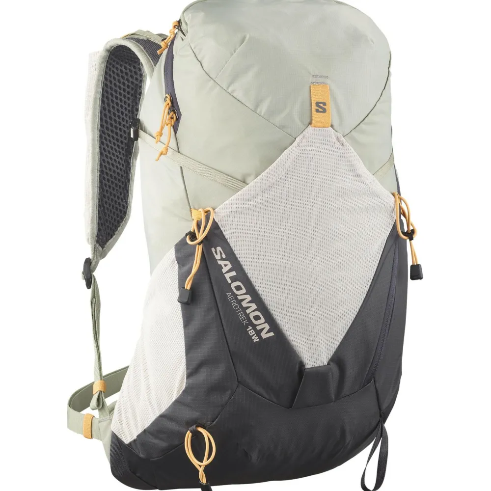 Mit dem Women’s Aerotrek 18 Wanderrucksack von Salomon bist Du für Deine Tagestouren im Gebirge gut gewappnet.Er überzeugt mit seinem Netzrückensystem, das dafür sorgt, dass Dein Rücken stets gut abtrocknen kann, und mit der gepolsterten Unterstützung an Deiner Lendenwirbelsäule. Zusammen mit dem verstellbaren, auf Frauenkörper angepassten Hüft- und Brustgurt wird so größtmöglicher Komfort und Stabilität geschaffen.Für die optimale Lastverteilung kannst Du die seitlichen Kompressionsriemen und die Lastkontrollriemen an den Schulterträgern individuell einstellen.