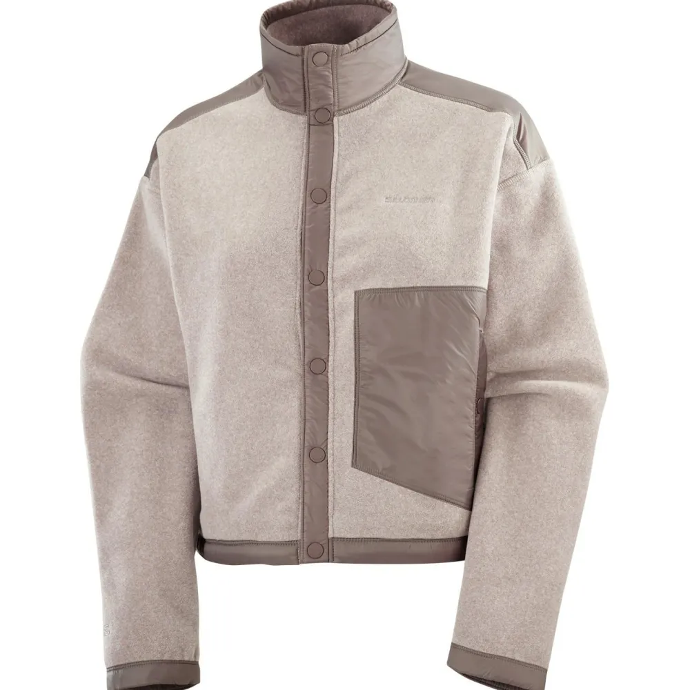 Mit dem Women’s Chroma Fleece Cardigan von Salomon bist Du im Alltag bestens organisiert: Zwei praktische Reißverschlusstaschen an der Front und eine zusätzliche Brusttasche bieten Dir sicheren Stauraum für Schlüssel, Handy oder Geldbeutel. Die durchgehende Knopfleiste macht das An- und Ausziehen besonders einfach und sorgt dafür, dass Du die Belüftung flexibel anpassen kannst – ideal, wenn das Wetter mal wieder Kapriolen schlägt. So hast Du alles Wichtige immer griffbereit und bist für spontane Unternehmungen bestens gerüstet.