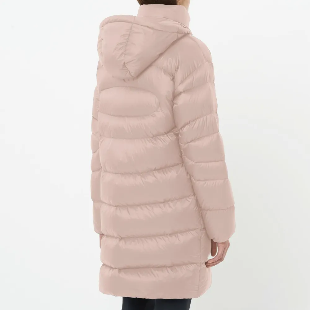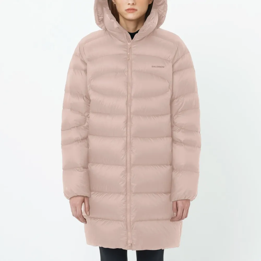 Die Women’s Outline Novelty Mid Down von Salomon punktet mit einer Daunenfüllung, die eine beeindruckende Bauschkraft von 800 cuin aufweist. Das bedeutet für Dich: Die Jacke schließt besonders viel Luft ein und sorgt so für eine optimale Isolierung – selbst an frostigen Tagen auf Deiner Freeride-Tour. Das Mischungsverhältnis von 90/10 (Daune zu Federn) macht die Jacke nicht nur angenehm warm, sondern auch spürbar leicht. Mit einem Gewicht von etwa 370 Gramm merkst Du sie kaum auf den Schultern, während sie Dich zuverlässig vor Kälte schützt.