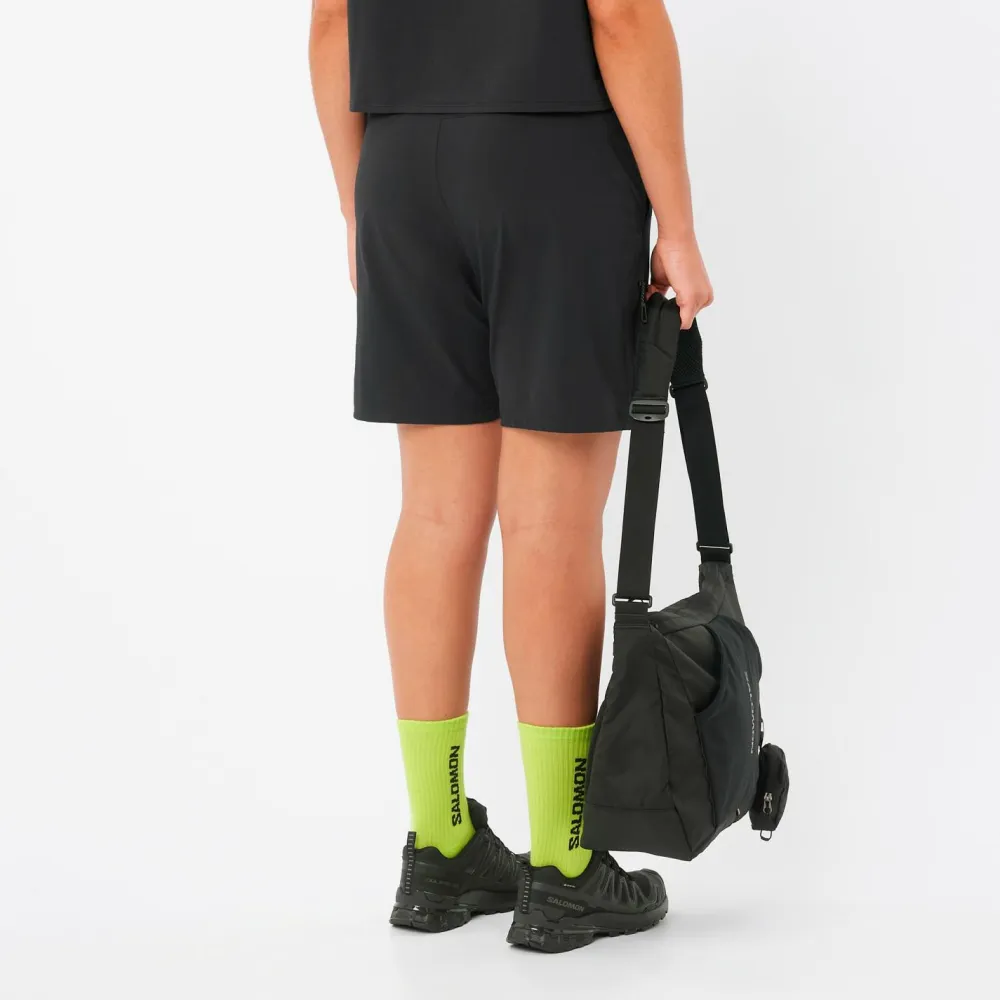 Die Women’s Wayfarer 2 Shorts von Salomon bieten Dir auf Deinen Wanderungen durchdachte Funktionalität: Zwei geräumige Fronttaschen und eine praktische Reißverschluss-Beintasche halten wichtige Dinge wie Smartphone oder Karte stets griffbereit. Dank integriertem Gürtel und verstellbarem Hüftbund sitzt die Shorts auch bei längeren Touren sicher und bequem. Die clever platzierten Taschen sorgen dafür, dass Du unterwegs alles Wichtige schnell zur Hand hast – ideal, wenn Du spontan eine Pause am Waldrand einlegst.