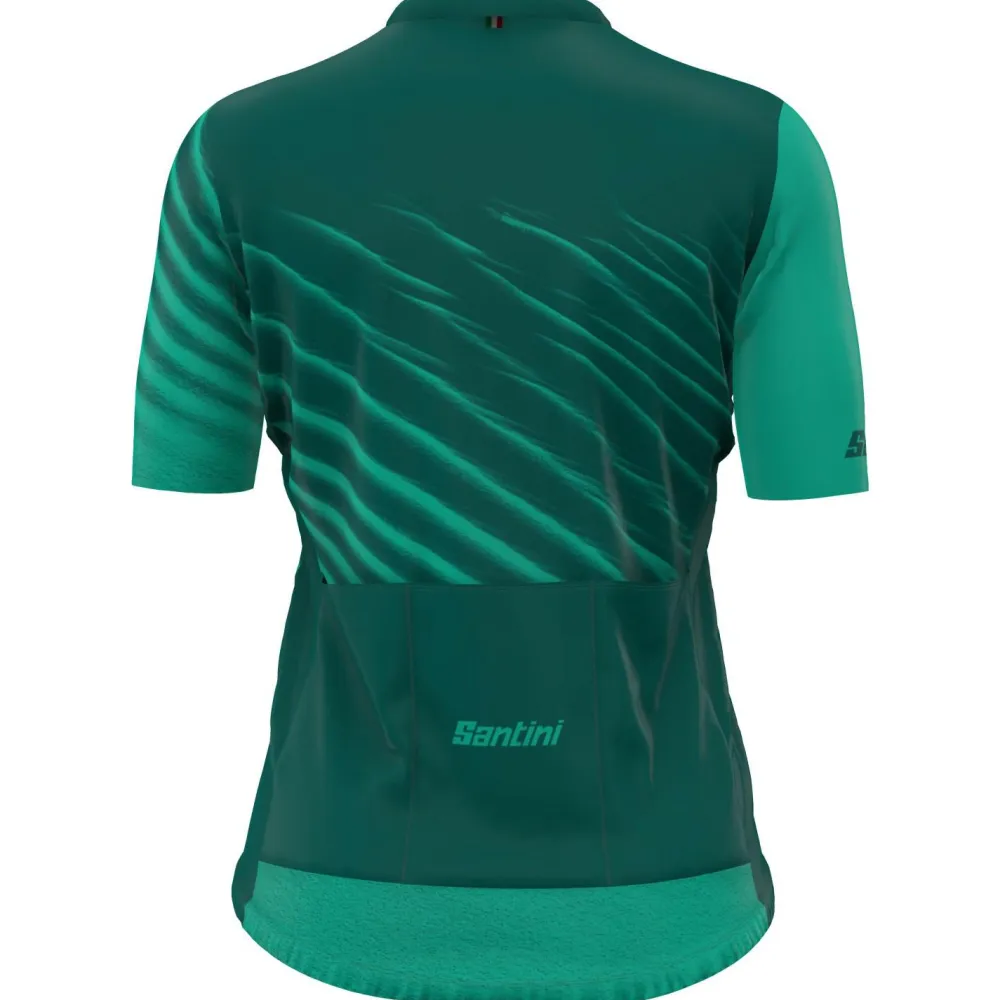 Das Women’s Astro-Rennradtrikot von Santini bietet Dir eine harmonische Kombination aus Stil und Funktionalität: der Schnitt ist klassisch, und die Raglan-Ärmel ermöglichen optimale Bewegungsfreiheit und bieten daher auch viel Komfort. Das Trikot besteht aus einem leichten und atmungsaktiven Stoff, der perfekt für lange Fahrten an warmen Tagen geeignet ist. Die Seiten, Ärmel und der Kragen sind aus glattem Mikrofasergewebe gefertigt, das sich gut an Deinen Körper anpasst und eine enge Passform bietet, ohne Deine Bewegungen einzuschränken. Die Ärmel haben eine Raw Cut-Öffnung, was ebenfalls dem Komfort zugute kommt.Ein innen angebrachtes, elastisches Band am unteren Rücken des Astro-Trikots sorgt dafür, dass es sicher an Ort und Stelle bleibt. Die drei Rückentaschen bieten Dir ausreichend Stauraum für Deine wichtigsten Utensilien, und reflektierende Details auf der Rückseite des Trikots erhöhen Deine Sichtbarkeit und Sicherheit bei schlechten Lichtverhältnissen.Deine Vorteile im Überblick: