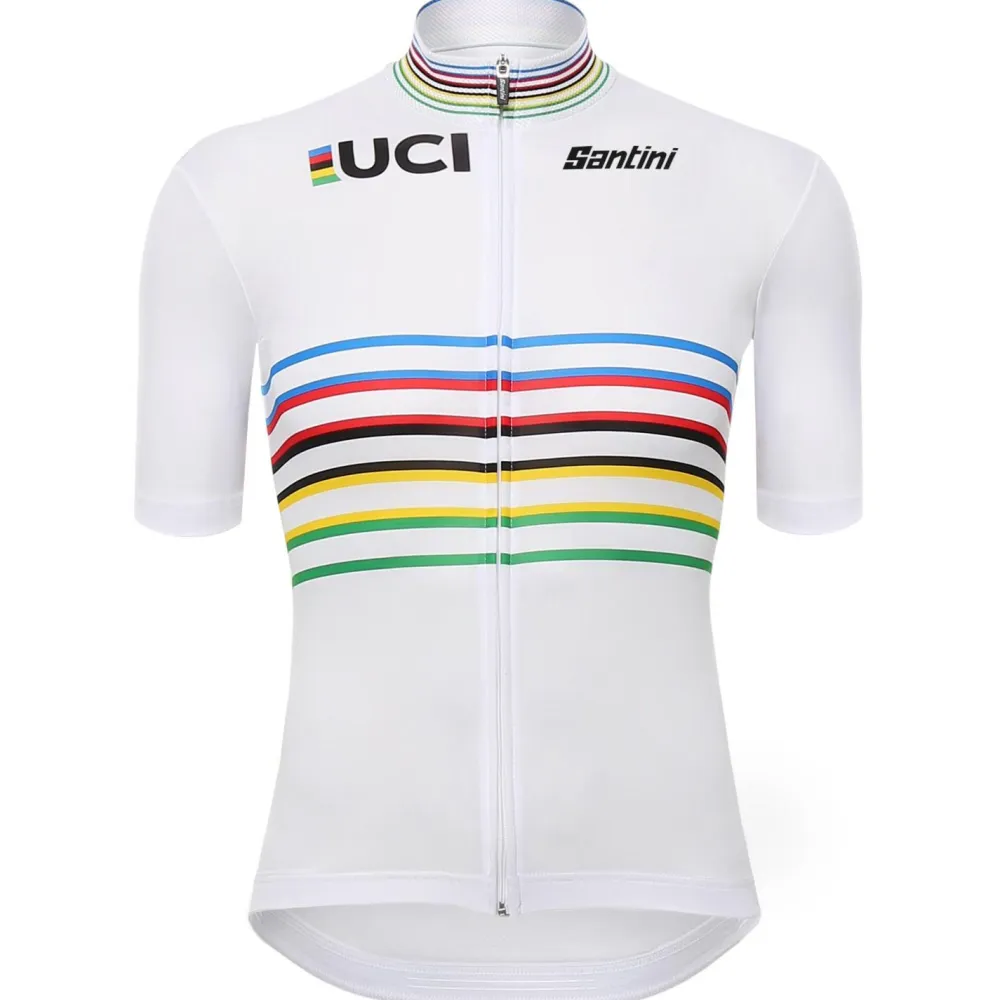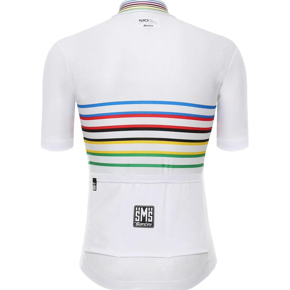 Als klassisches Radtrikot mit sportlichem Schnitt begeistert das Women’s UCI Official World Champion Master Jersey Radtrikot von Santini beim Training mit dem Roadbike. Dafür bietet das Rennradtrikot hervorragende Beweglichkeit, tolle Atmungsaktivität und zuverlässigen UV-Schutz mit Lichtschutzfaktor UPF 30. Drei praktische Rückentaschen, ein kurzer Stehkragen und ein durchgehender Frontreißverschluss ergänzen das hübsche Shirt. Als optisches Highlight unterstreichen die Regenbogenfarben am Hals und am Oberkörper den weltmeisterlichen Look.