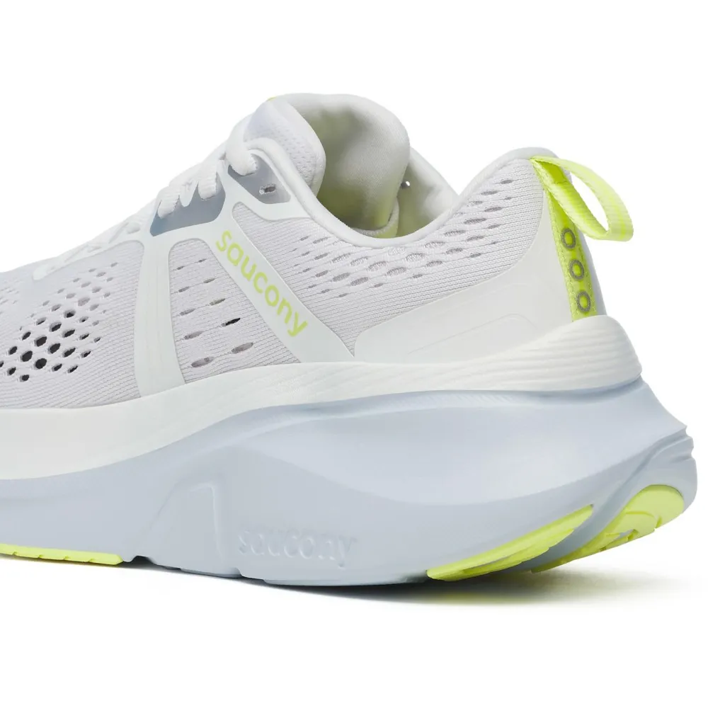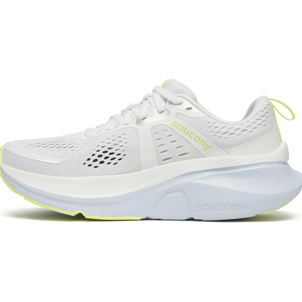Die Women’s Guide 18 von Saucony sind die idealen Laufschuhe für ambitionierte Läuferinnen. Dank der Centerpath-Technologie bietet der breite Schuhboden mit höheren Seiten eine sichere Umhüllung des Fußes, was besonders bei langen Läufen für optimalen Schutz sorgt. Diese Technologie ermöglicht ein müheloses Abrollen und unterstützt eine gesunde Lauftechnik.
