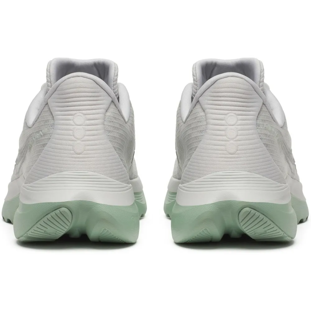 Die Women’s Kinvara 16 von Saucony bringt mit ihrer PWRRUN-Zwischensohle eine ausgewogene Mischung aus Dämpfung und Reaktionsfreude auf die Straße. Das bedeutet für Dich: Jeder Schritt fühlt sich angenehm federnd an, ohne dass Du dabei an Tempo verlierst – perfekt für schnelle Trainingsrunden am Morgen oder längere Einheiten nach Feierabend. Die moderate Sprengung von 4 Millimetern unterstützt Deinen natürlichen Laufstil und sorgt dafür, dass Du dynamisch und effizient unterwegs bist. Mit einer Stapelhöhe von 29 Millimetern genießt Du ein gutes Maß an Bodennähe, während die Gummi-Laufsohle Dir auf Asphalt zuverlässigen Grip bietet – so kannst Du Dich ganz auf Deinen Lauf konzentrieren.