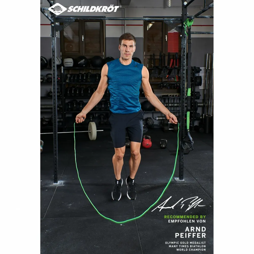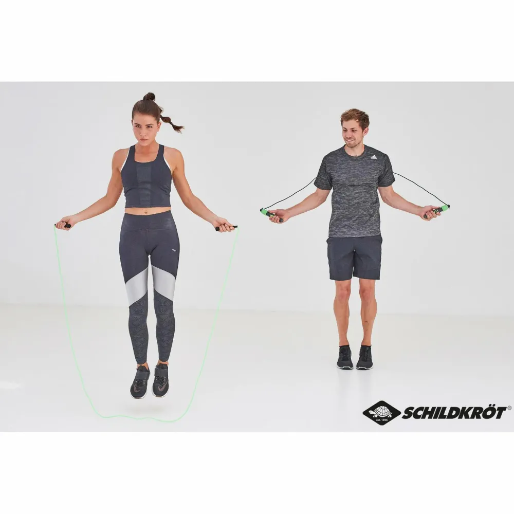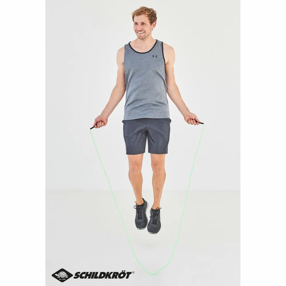 Super schnell und vielseitig – Das Speed Rope von Schildkröt ist ein schnelldrehendes Springseil mit einem PVC Kunststoffseil. Das Seil ist insgesamt 300cm lang (inkl. Griffe). Du kannst es jedoch problemlos und schnell kürzen. Das kleine und leichte Gerät ist immer dabei und peppt jedes deiner Trainings auf.