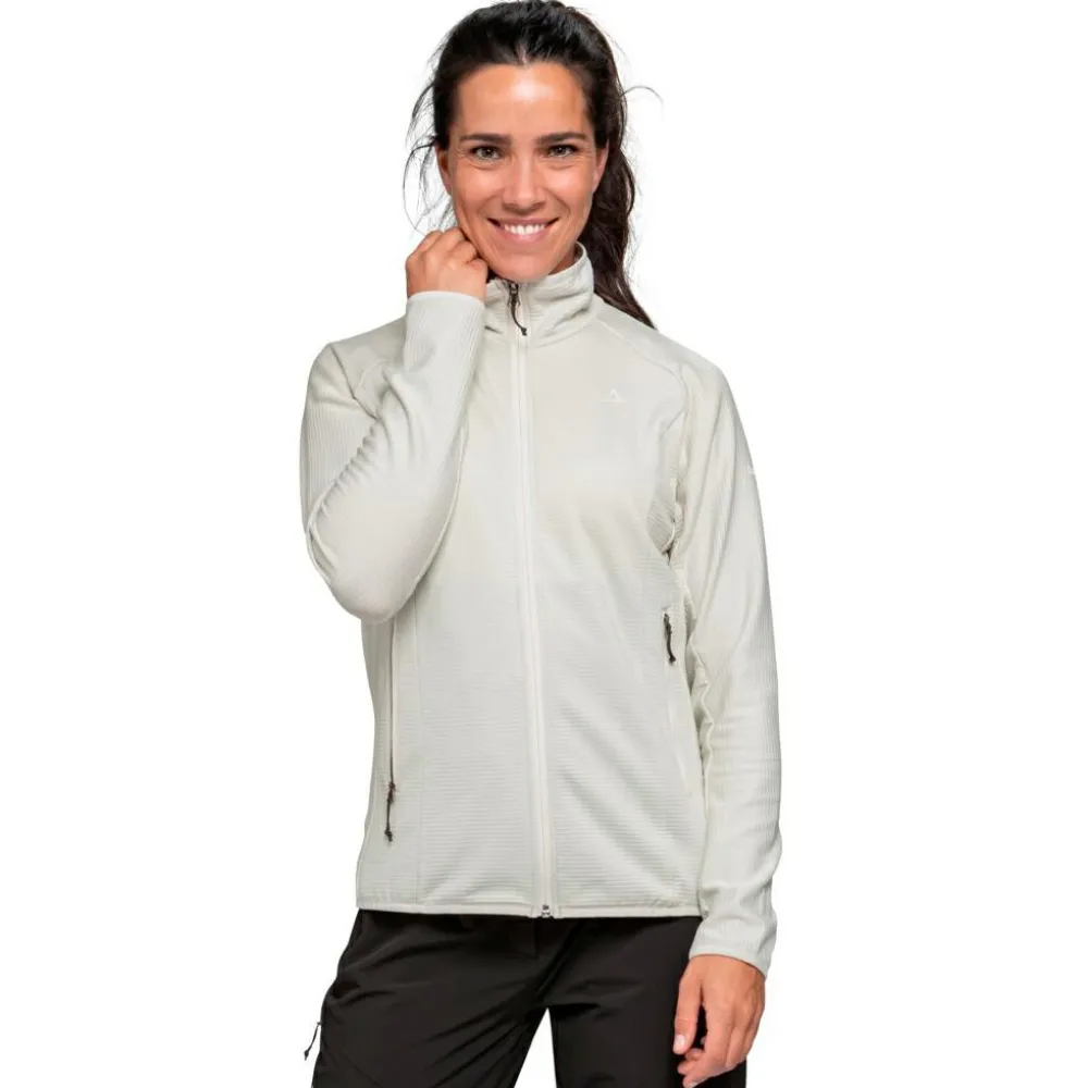 Die sportlich-lässige Women’s Fleece Jacket Cascata von Schöffel kannst Du vielseitig einsetzen.Sie kann Dich sowohl bei Wanderungen und Hochtouren, als auch als Baselayer bei Skitouren oder einfach im Büro wärmen.Sollte sie einmal nass werden, trocknet sie schnell wieder. Das kann sich gerade bei mehrtägigen Trekking- oder Skitouren als Vorteil erweisen.Der Stehkragen kann die empfindliche Halsregion zusätzlich vor Kälte schützen.In den zwei Reißverschlusstaschen kannst Du schnell erreichbar und dennoch sicher Deine Wertsachen oder Wanderkarte aufbewahren.