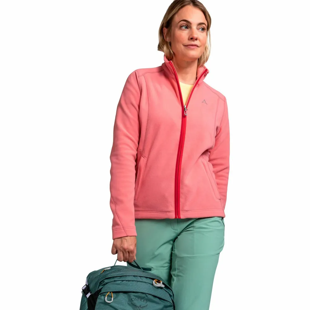 Mit der Women’s Fleece Jacket Leona3 von Schöffel bist Du für Deine Outdoorabenteuer bestens ausgerüstet. Die funktionelle Fleecejacke ist aus 100% recyceltem Pontetorto Tecnopile Material hergestellt. Das ist gut für die Umwelt und auch die funktionellen Eigenschaften kommen dabei nicht zu kurz. Denn das Material wärmt leicht, lässt somit Kälte kein leichtes Spiel und ist außerdem schnelltrocknend und hoch atmungsaktiv.