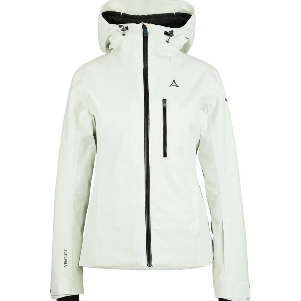 Mit der Women’s Jacket Nollen Skijacke von Schöffel bist Du bestens ausgestattet für alle möglichen Skiabenteuer!Mit ihrer hohen Wassersäule von 10 000 mm und den getapten Nähten wird kein Wasser eindringen, auch wenn Du Dich den ganzen Tag lang im Schnee aufhältst.Gleichzeitig überzeugt sie auch mit einer sehr hohen Atmungsaktivität. Das heißt, es wird viel Feuchtigkeit nach außen transportiert, Du kommst nicht unangenehm ins Schwitzen und es entsteht kein störender Hitzestau.Ein fester Schneefang mit Silikonband und die verstellbaren Ärmelabschlüsse mit Stulpen verhindern bei Stürzen das Eindringen von Schnee.Dank des 4-Wege-Stretch Materials hast Du eine sehr hohe Bewegungsfreiheit und wirst in keiner Deiner Bewegungen eingeschränkt!Du wirst vielfältige Taschen vorfinden, in denen Du Deinen Liftpass, Deine Brille, Dein Smartphone bequem und schnell erreichbar unterbringen kannst.