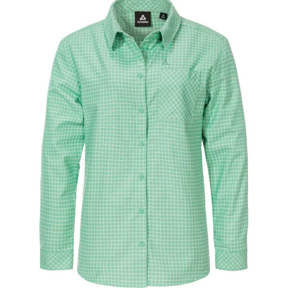Die ‚Women’s Blouse Boyoma‘ von Schöffel bringt frischen Wind in Deine Garderobe! Der elegante Stehkragen und die durchgehende Knopfleiste verleihen ihr einen Hauch von Raffinesse, während die Langarm-Ärmel für zusätzlichen Komfort sorgen. Die praktische Brusttasche setzt einen modischen Akzent und rundet das Design ab. Ob beim entspannten Spaziergang oder beim Treffen mit Freunden – diese Bluse passt einfach immer.