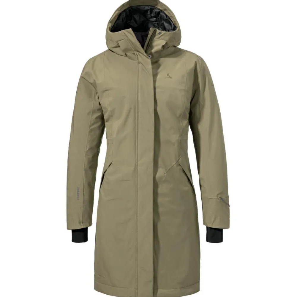 Der Women’s Insulated Coat Gregale Wintermantel von Schöffel sieht nicht nur gut aus, sondern ist auch hochfunktional!Mit der Wassersäule von 10 000 mm ist er wasserdicht und dennoch atmungsaktiv. Das heißt, Du kommst auch nicht ins Schwitzen, wenn Du mit dem Fahrrad in der Stadt fährst.Die kuschelige Kapuze und der hohen Stehkragen können Wind und Wetter trotzen. Auch der Reißverschluss ist mit einer Windabdeckleiste geschützt, die Du mit einer zusätzlichen Knopfleiste fixieren kannst. Somit hat die Kälte keine Chance auf ein Eindringen!Zu Deiner Sicherheit ist der Women’s Insulated Coat Gregale mit reflektierenden Details an der Ärmeltasche ausgestattet, sodass Du auch in der Dämmerung im Straßenverkehr gut sichtbar bist.
