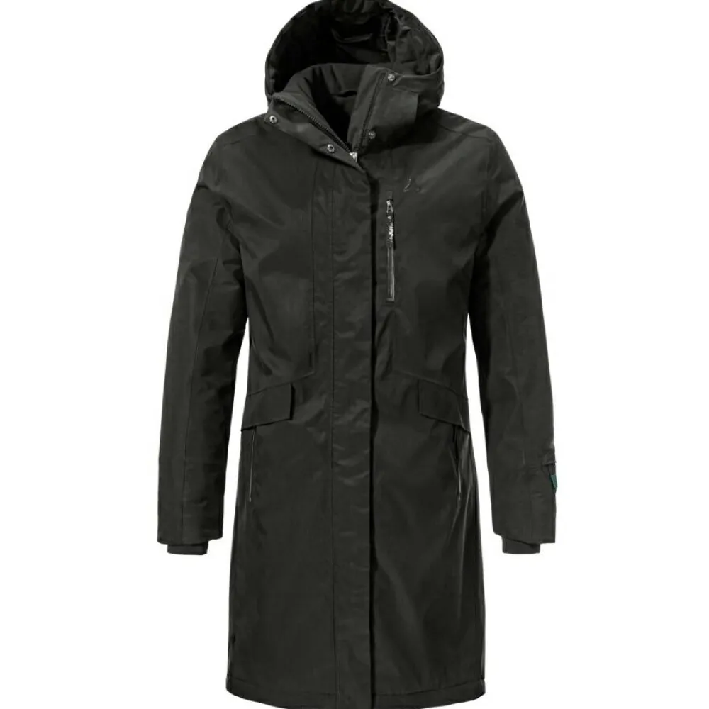 Der Women’s Insulated Coat Kalmor von Schöffel ist Dein verlässlicher Begleiter bei unbeständigem Wetter. Dank der Hardshell-Materialien bietet er Dir optimalen Schutz vor Regen und Wind. Mit einer Wassersäule von 10.000 mm bleibst Du selbst bei starkem Regen trocken, während die Atmungsaktivität von 10.000 g/m²/24h dafür sorgt, dass Feuchtigkeit nach außen transportiert wird. So genießt Du auch bei wechselhaften Bedingungen höchsten Tragekomfort.