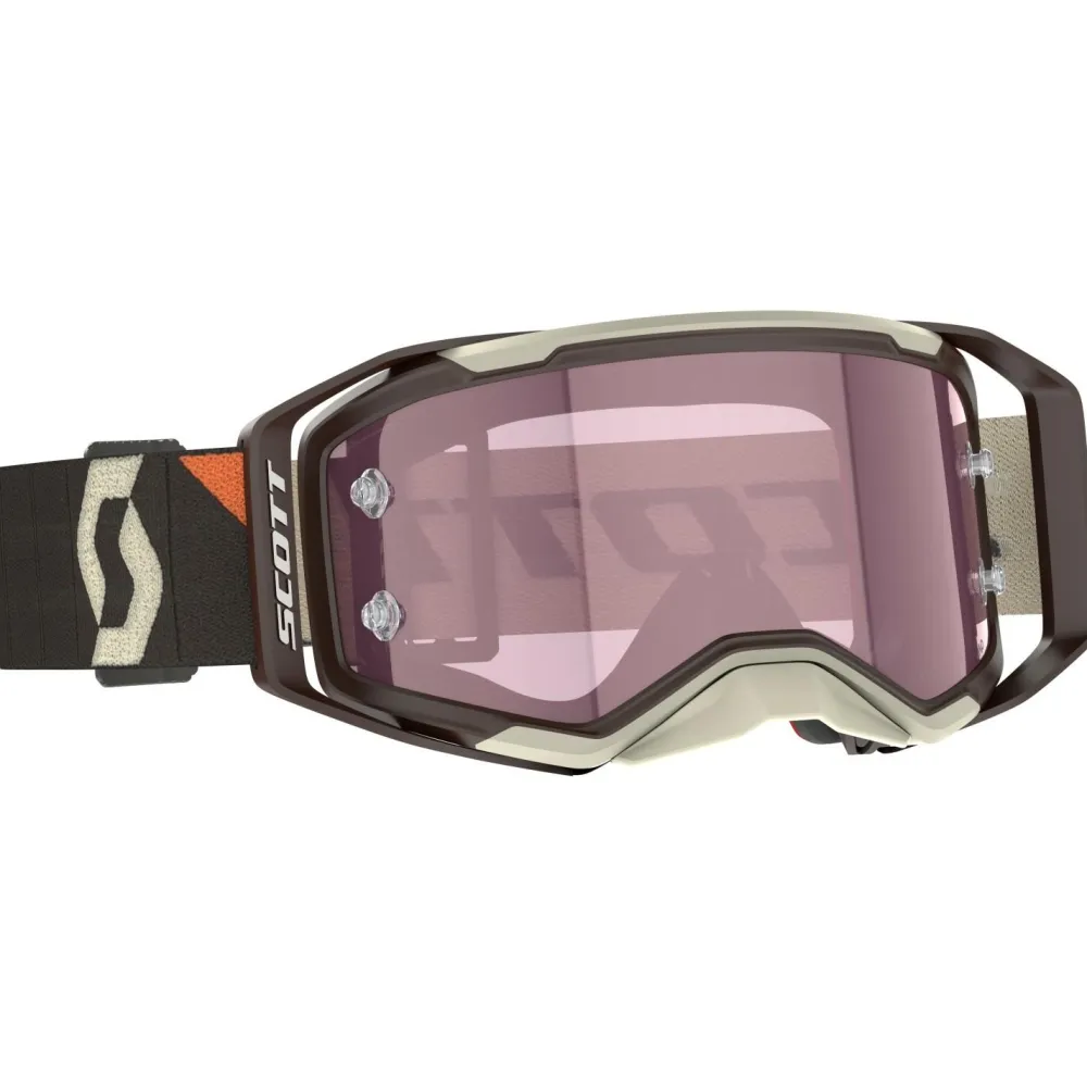 Die Prospect 2.0 AMP S1 Goggles von Scott sind für den anspruchsvollen Einsatz beim Downhill konzipiert. Mit ihren robusten Materialien ist sie bereit für den ein oder anderen ruppigen Kontakt mit Buschwerk oder anderen Fremdkörpern auf dem Trail. Die Brille ist mit einem Linsen-Wechselsystem versehen und bietet so eine perfekte Anpassung auf wechselnde Lichtverhältnisse.