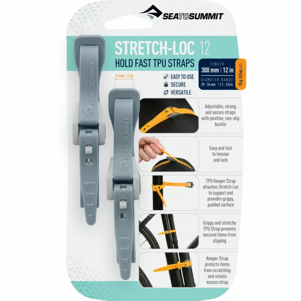 Auf Reisen, Radtouren und Abenteuern sind die Gurte Stretch-Loc 12 2-Pack von Sea to Summit praktische Partner! Sie bestehen aus griffigem, langlebigem Material. Schnell und leicht lassen sie sich spannen und befestigen Ausrüstungsgegenstände sicher. Verbindet man mehrere Gurte erhält man mehr Länge. Echte Allrounder!