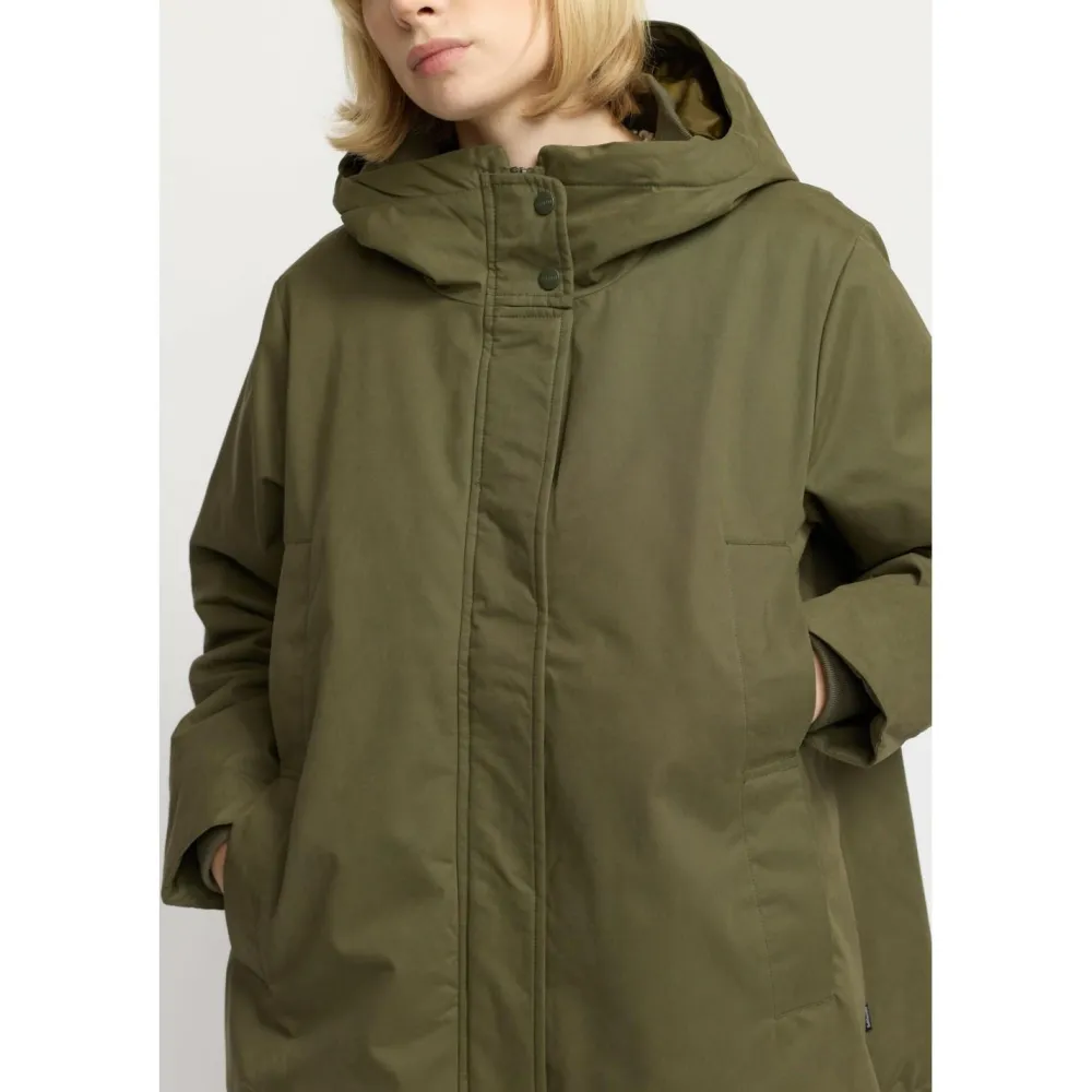 Gerade an Tagen mit Niederschlag erweist aber auch die ebenfalls wetterfeste und isolierte Kapuze als sehr angenehm. Elastische Ärmelbündchen und ein Kordelzug im Saum sorgen außerdem dafür, dass der Mantel rundum dicht abschließt.