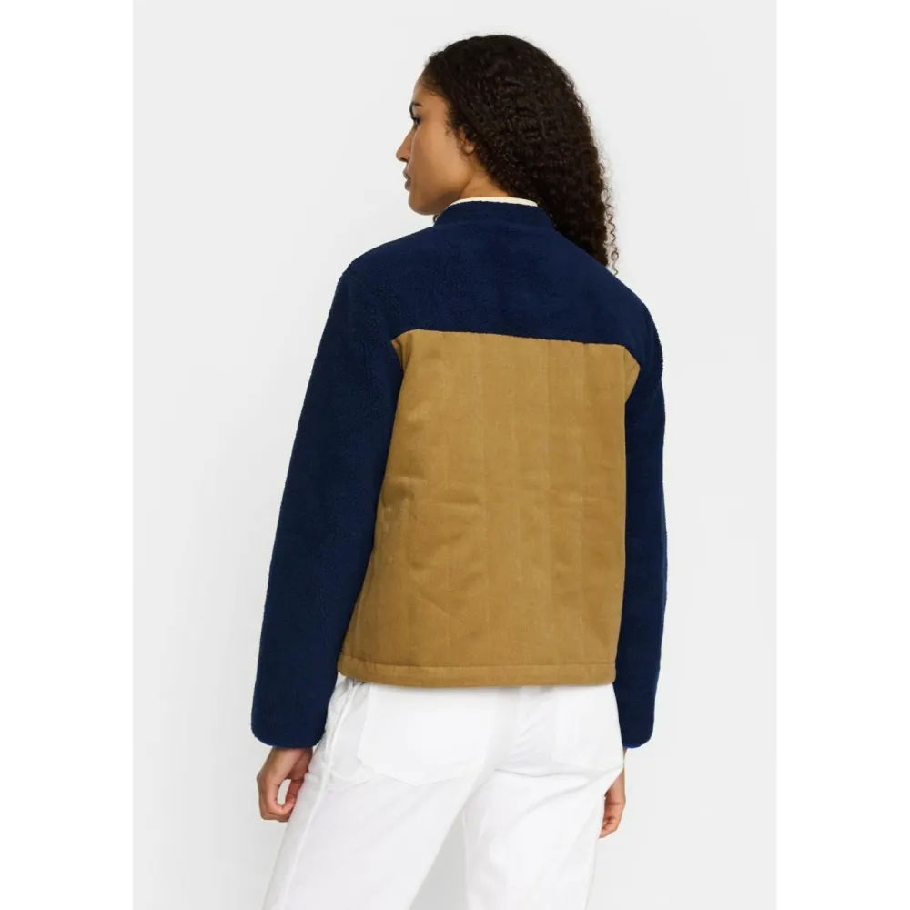 Die Kombination aus Teddy-Stoff und vertikal gesteppter Oberfläche ist nicht nur optisch interessant, sondern auch funktional. Der dichtere Stoff im unteren Bereich schützt etwas besser vor Wind, während das Teddy-Material an Armen und Schultern für Wärme und ein weiches Gefühl sorgt.
