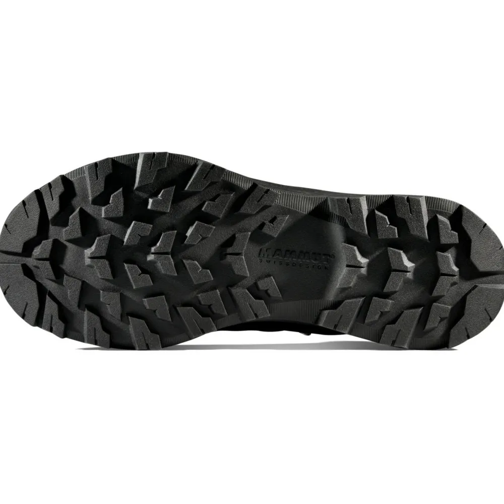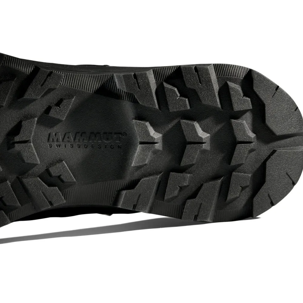 Die Mammut Swiss Design-Sohle bietet hervorragenden Grip auf verschiedenstem Untergrund, und der hochgradig rückfedernde Schaumstoff sorgt für eine effiziente Dämpfung bei jedem Schritt. Die verbesserte, etwas breitere Passform trägt sich der Schuh besonders komfortabel und die hohe Sohle bietet zusätzliche Dämpfung – ideal für lange Tage auf den Beinen.