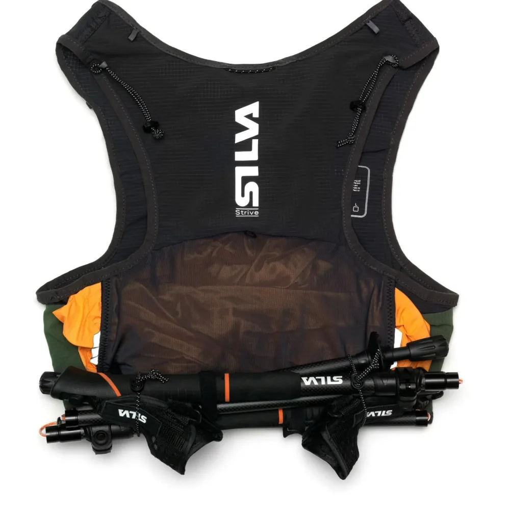Dass man sie beim Laufen kaum bemerkt, verdankt die Strive Fly Vest auch den beiden mehrfach verstellbaren Brustgurten und den durchdacht platzierten Taschen, Fächern und Riemen. Dazu gehören vier Fronttaschen, eine geräumige und leicht zugängliche Netztasche auf der Rückseite und zwei Seitentaschen für zusätzliche Kleinigkeiten wie Handschuhe. Hinzu kommen zwei bewegliche und verstellbare Riemen für Trinkflaschen und -Halme sowie vier weitere bewegliche und verstellbare Riemen zum Befestigen von Laufstöcken oder anderen Gegenständen. Ganz klar: mit der Strive Fly Vest gilt alle Konzentration einzig und allein dem Lauf!