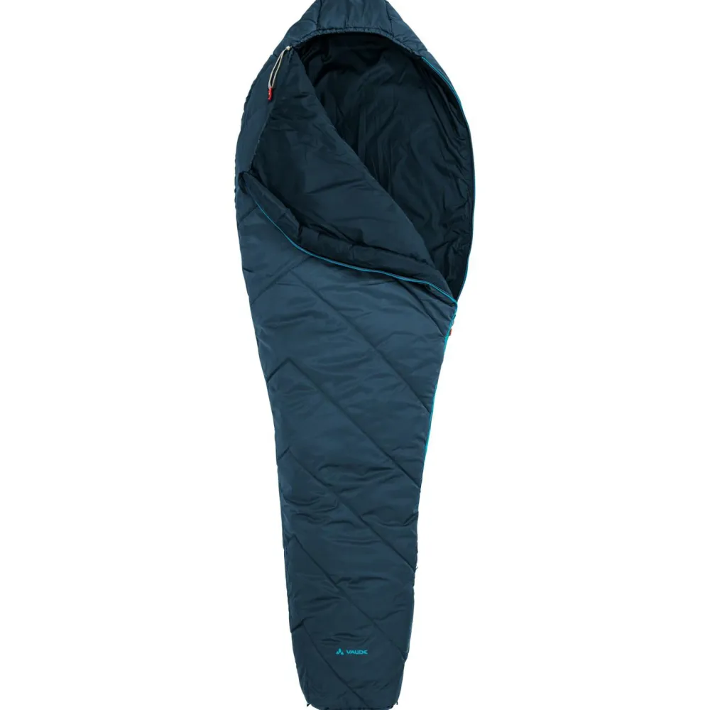 Der Sioux 400 S II SYN Kunstfaserschlafsack von Vaude ist für warme Temperaturen ausgelegt und eignet sich mit +8°C Komforttemperatur für kühle Sommernächte und milde Nächte im Herbst und Frühling. Dabei ist der Mumienschlafsack etwas kürzer und schmaler geschnitten und eignet sich damit perfekt für kleinere Personen mit maximal 170 cm Körpergröße.