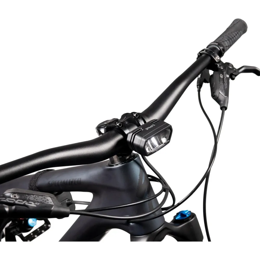 Die SL MiniMax AF leuchtet Deinen Weg bis zu 260 Meter weit absolut hell und gleichmäßig aus. Der externe Akku wird mit einem beschichteten Klettband am Ober- oder Unterrohr befestigt. Mit einem Knopfdruck kannst Du die verbleibende Kapazität auf der SmartCore Anzeige ablesen. Mit dem Schnellspanner für Rundlenker, aus CNC-gefrästem Aluminium, wird die Lampe in Sekundenschnelle neben dem Vorbau montiert und sitzt so symmetrisch mittig am Lenker. Das Gehäuse, ebenfalls aus CNC-gefrästem und schwarz eloxiertem Aluminium, ist besonders robust, langlebig und hitzebeständig. Die SL MiniMax AF ist zudem wasserdicht und stoßfest nach IK09 und IP67.