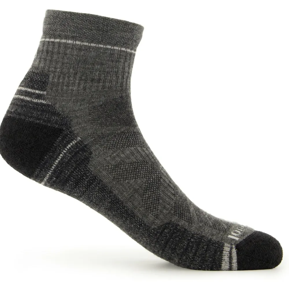 Mit den Hike Light Cushion Ankle hat Smartwool ein Paar kurze Wandersocken im Programm, welche sich ideal für lange und kurze Wanderungen in den Bergen eignen. Die kurzen Sportsocken sind aus weicher Merinowolle und atmungsaktiver Kunstfaser hergestellt. Feuchtigkeit wird beim Wandern gezielt nach außen hin abgeleitet.