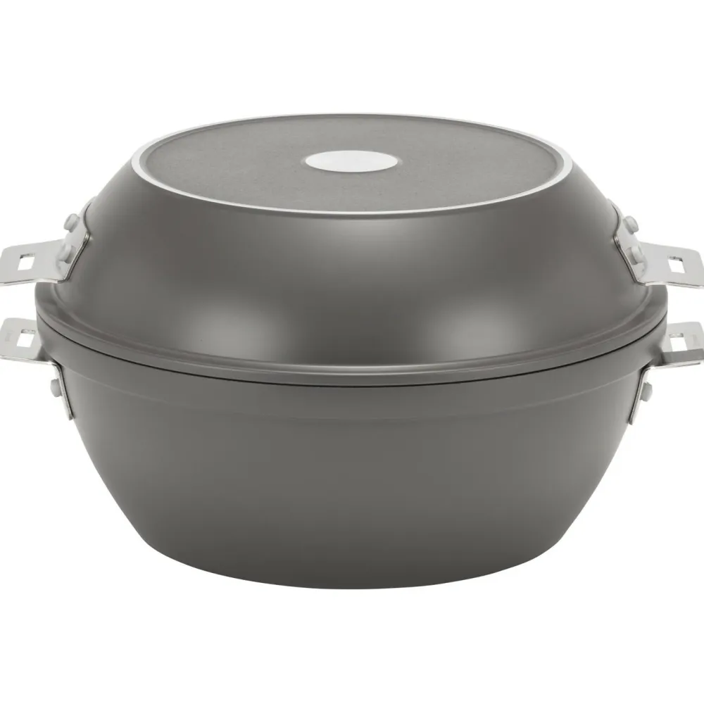 Ob Braten, Backen oder Schmoren – das Field Cooker Pro von Snow Peak ist der ideale Allrounder für die Campingküche! Das dreiteilige Kochset aus Aluminium besteht aus einem großen Topf, einem Reiskochtopf und einer Bratpfanne, die dank dem modularen Design auch als Topfdeckel verwendet werden kann. Der Topf und die Pfanne sind mit einer Antihaftbeschichtung versehen und die einklappbaren Griffe aus langlebigem Edelstahl machen das Verstauen zum Kinderspiel.
