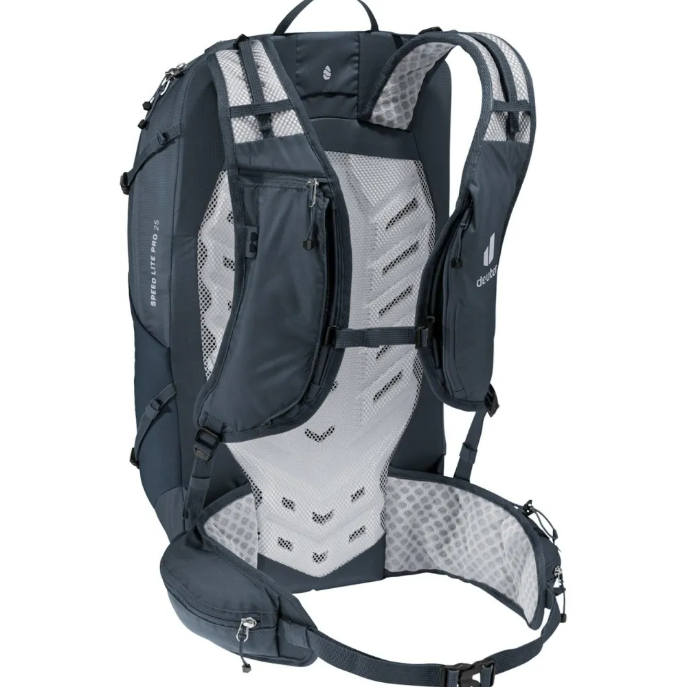 Der Speed Lite Pro 25 Wanderrucksack von Deuter sorgt für Tempo und Effizienz bei Wanderungen und Bergtouren! Reduziert auf das Wesentliche aber ohne Verzicht auf praktische Details bringt dieses Federgewicht eine optimale Gewicht-Komfort-Ratio auf die Waage und beansprucht minimal wenig Energie beim Tragen. Das gut belüftete LiteAir-Rückensystem und der bis in jedes Detail durchdachte Materialeinsatz leisten einen wesentlichen Beitrag zu diesem Komfort.