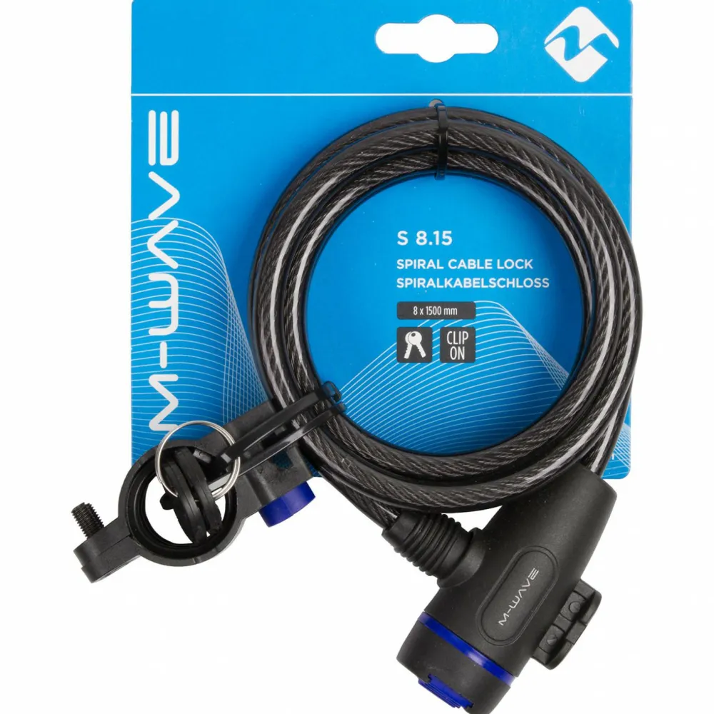 Das Spiralkabelschloss S 8.15 von M-Wave sorgt für mehr Sicherheit, wenn Du Dein Bike unbeaufsichtigt abstellen möchtest. Die hochwertigen Materialien sind diebstahlsicher und das Fahrradschloss ist mit einem Zylinderschlüssel ausgestattet. Das robuste Spiralkabel wird zusätzlich noch von einem transparenten Schutzmantel umhüllt, um es gegen Witterung abzuschirmen.