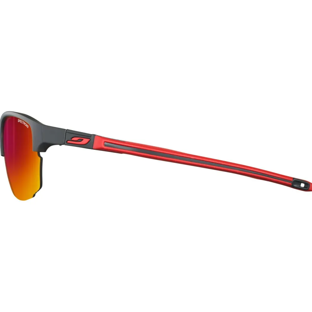 Sieht lässig aus und eignet sich für sportliche Aktivitäten bestens, die Split Spectron S3 (VLT 12%) von Julbo. Diese Sonnenbrille wurde speziell für Personen mit einer schmalen Gesichtsform entworfen. Durch den Halbrandrahmen und die filigranen Bügel ist sie gut belüftet und sitzt dabei angenehm. Gummierungen an den Bügeln verhindern zusätzlich, dass die Brille rutscht. Die Gläser gehören der Schutzklasse 3 an und sind zusätzlich verspiegelt. Ideal für Kaiserwetter!