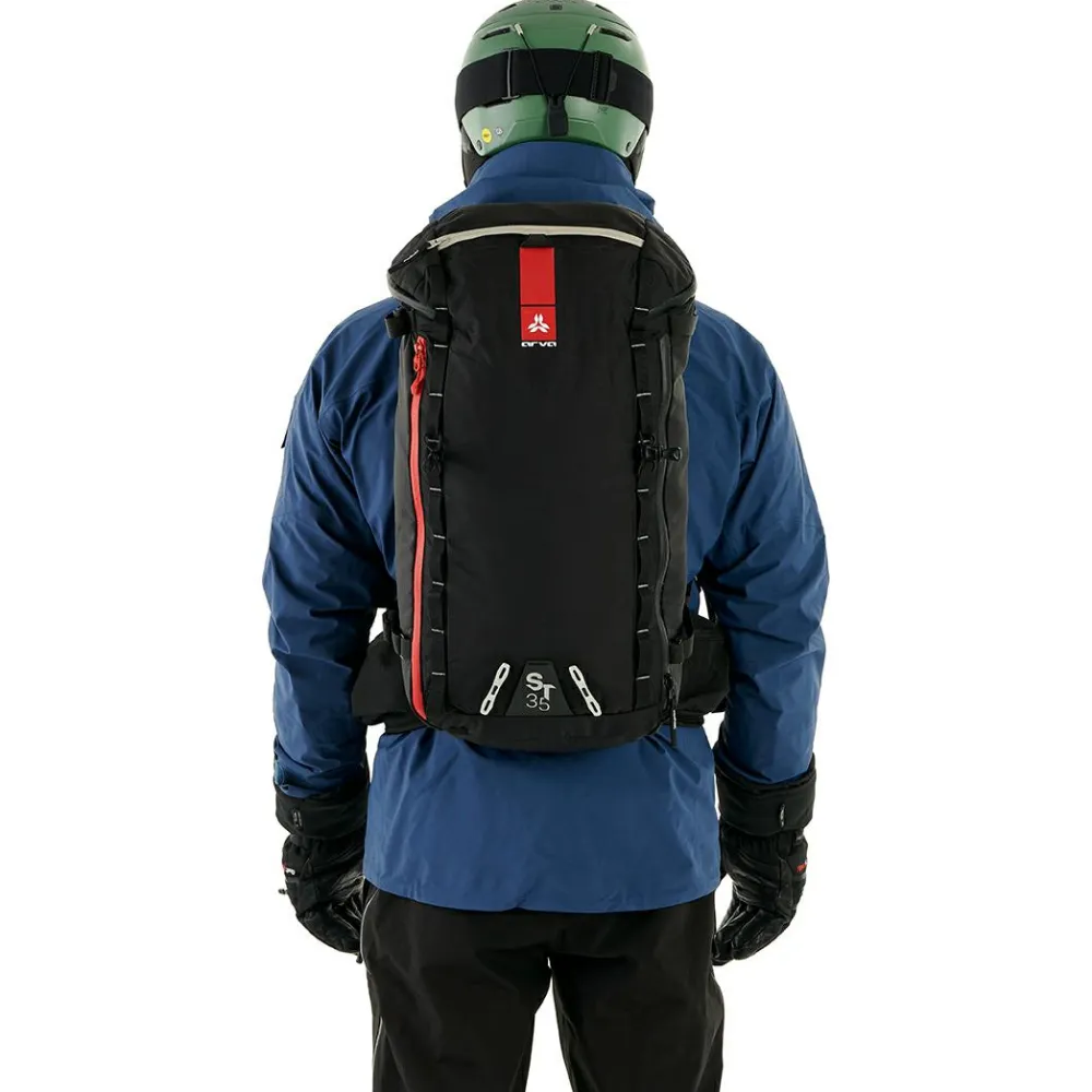 Der ST 35 ist kompatibel mit Hydratationssystemen und verfügt über einen Schlauchschutz im Schultergurt. Ein integrierter Helmhalter, Daisy-Chain-System und Befestigungsmöglichkeiten für Ski (A-Frame oder diagonal), Snowboard und Schneeschuhe machen ihn extrem vielseitig. Zusätzliche Taschen für Sicherheitsausrüstung und kleine Wertsachen sowie ein Brustgurt mit Signalpfeife runden das Paket ab.